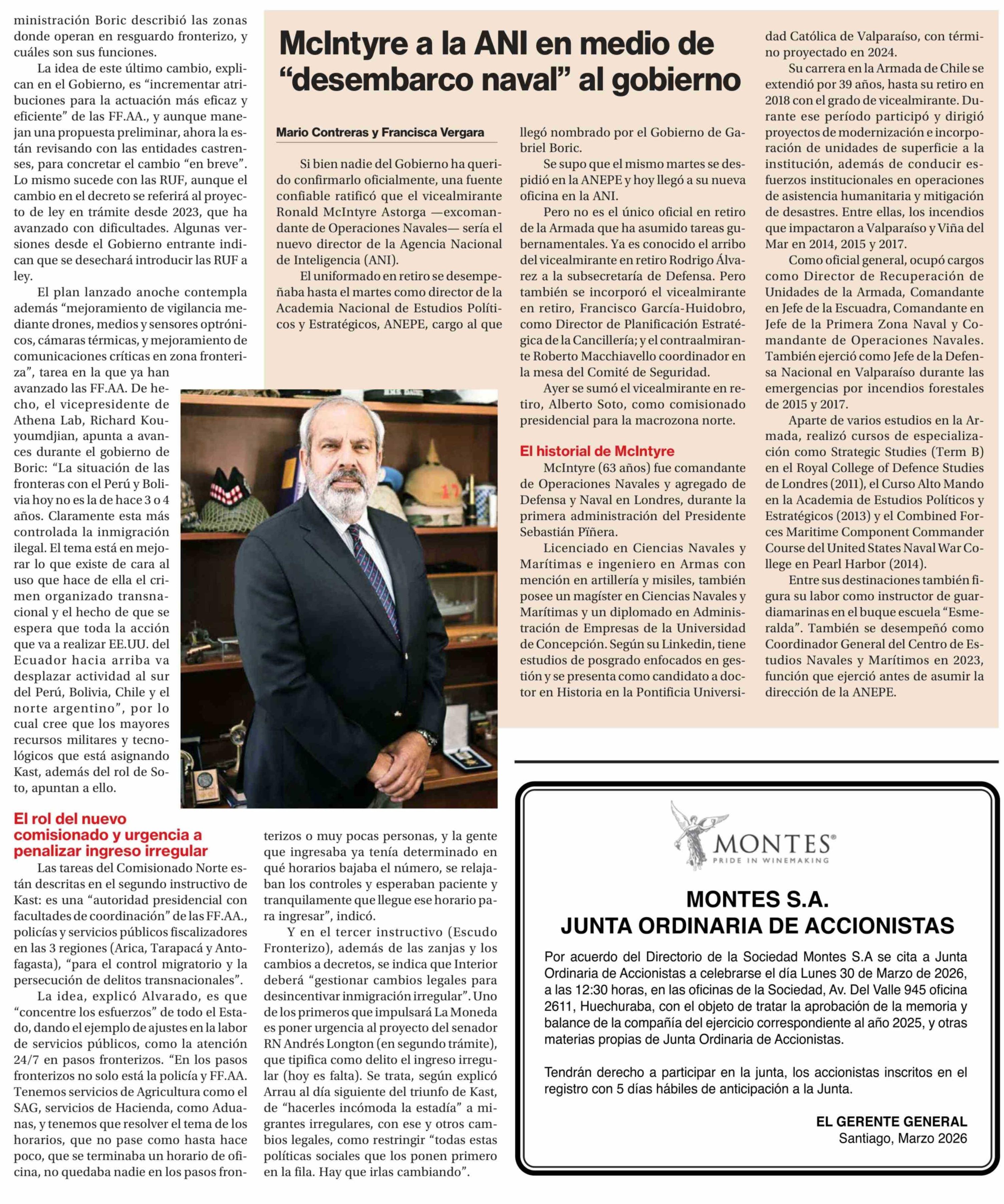 Ministro del Interior: "Lunes o martes" parten zanjas de Kast en el norte 12-03-2026 La Segunda |