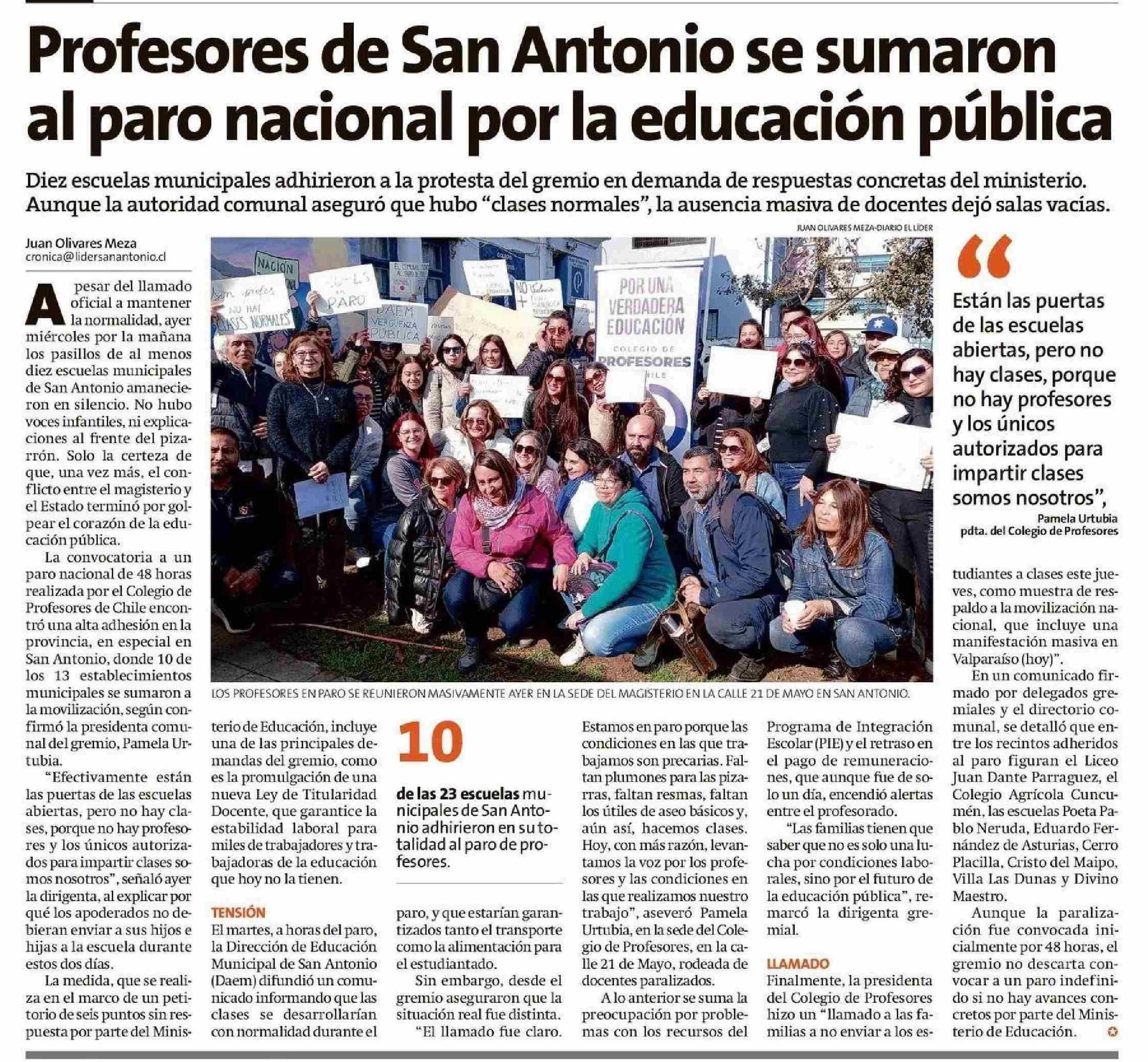 Profesores de San Antonio se sumaron al paro nacional por la educación pública 05-06-2025 El Líder |