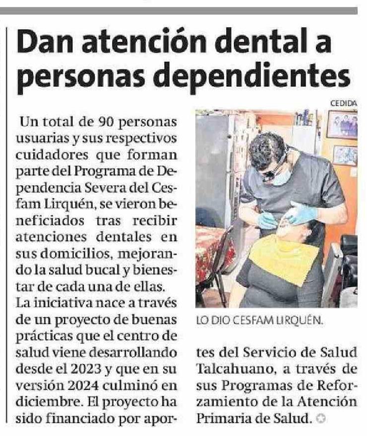 Dan atención dental a personas dependientes 16-01-2025 La Estrella de Concepción |