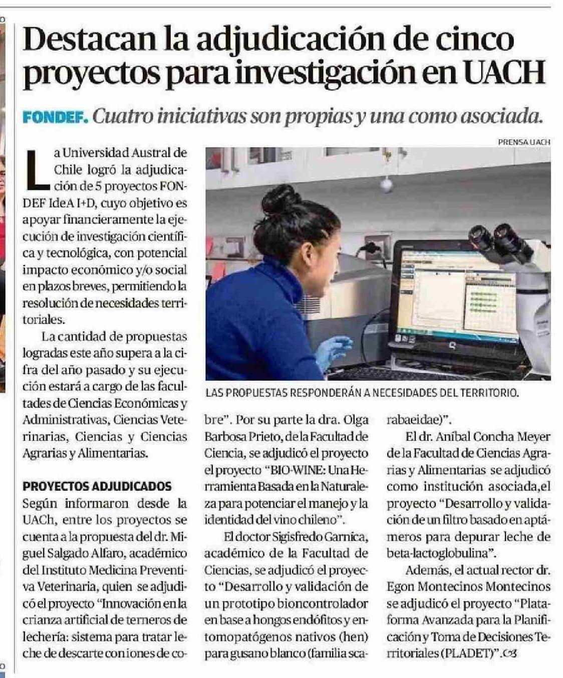 Destacan la adjudicación de cinco proyectos para investigación en UACH 16-06-2025 Diario Austral Región de Los Ríos |