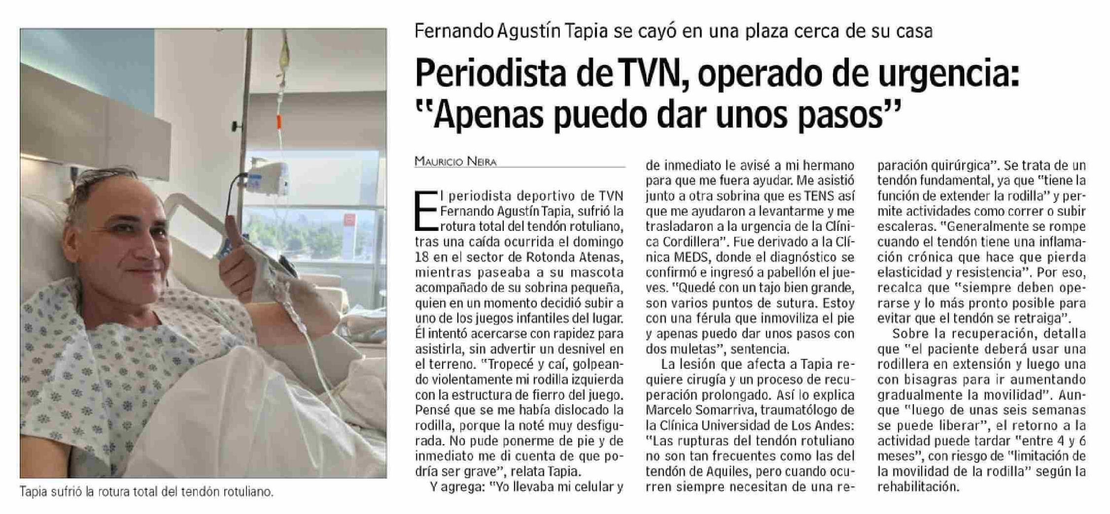 | Título: | Periodista de TVN, operado de urgencia: "Apenas puedo dar unos pasos" |
