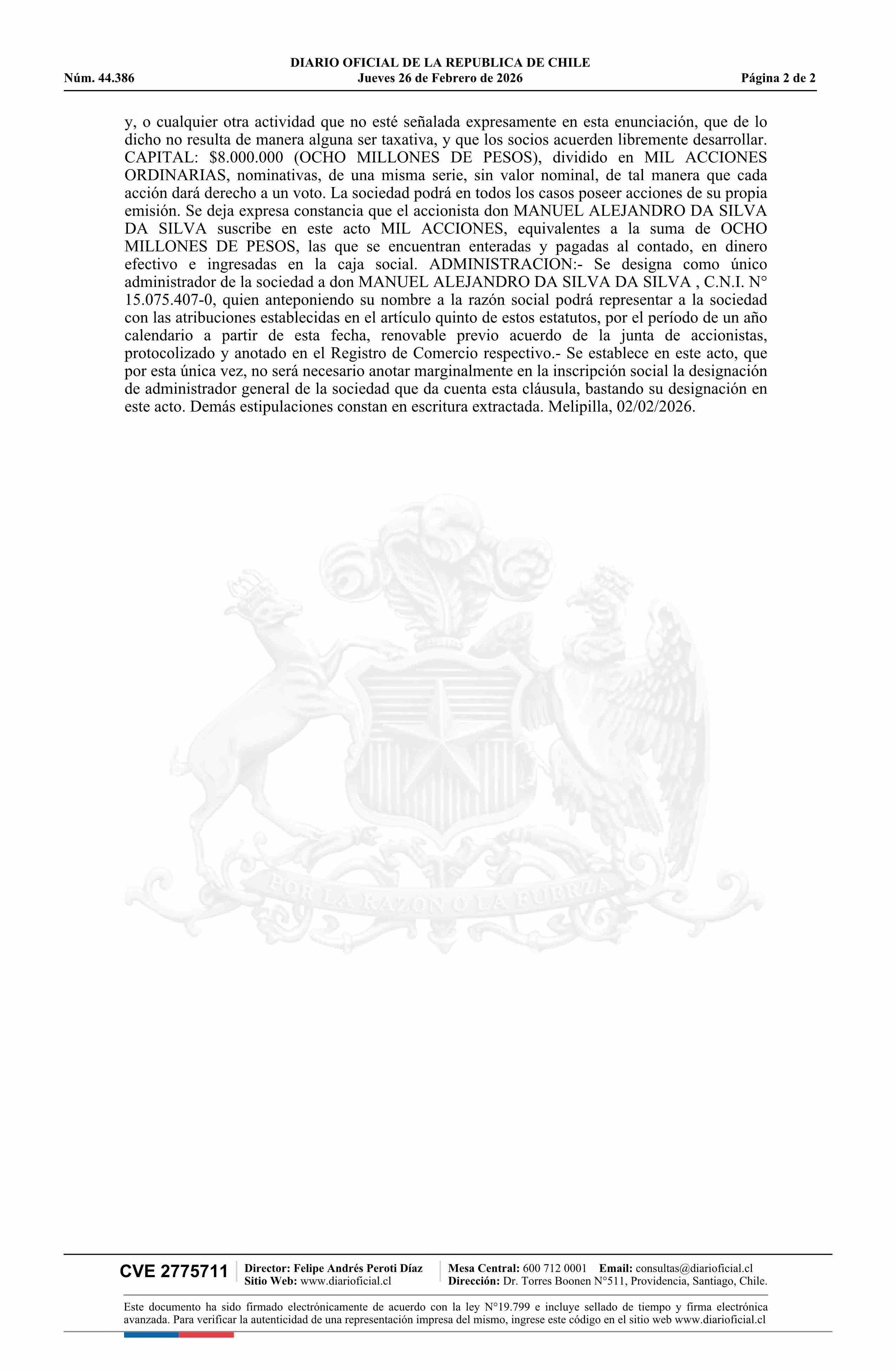 AGRICOLA DA SILVA SpA 26-02-2026 Diario Oficial Edición Electrónica |