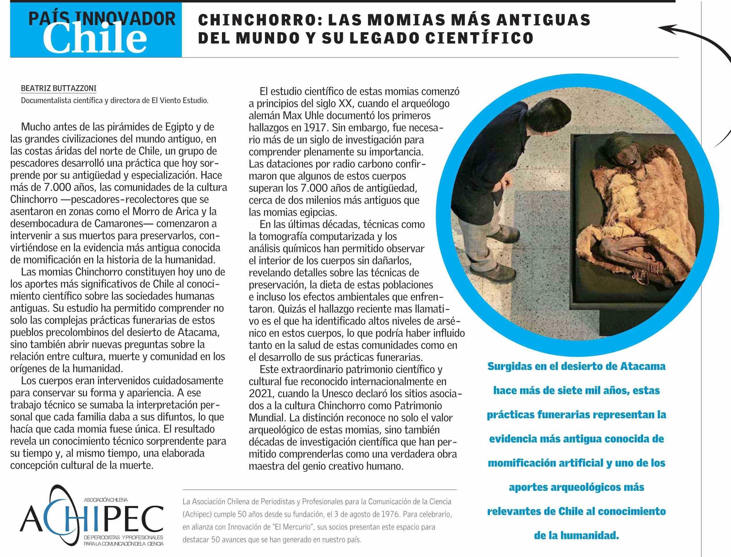 CHINCHORRO: LAS MOMIAS MÁS ANTIGUAS DEL MUNDO Y SU LEGADO CIENTÍFICO 19-03-2026 El Mercurio |