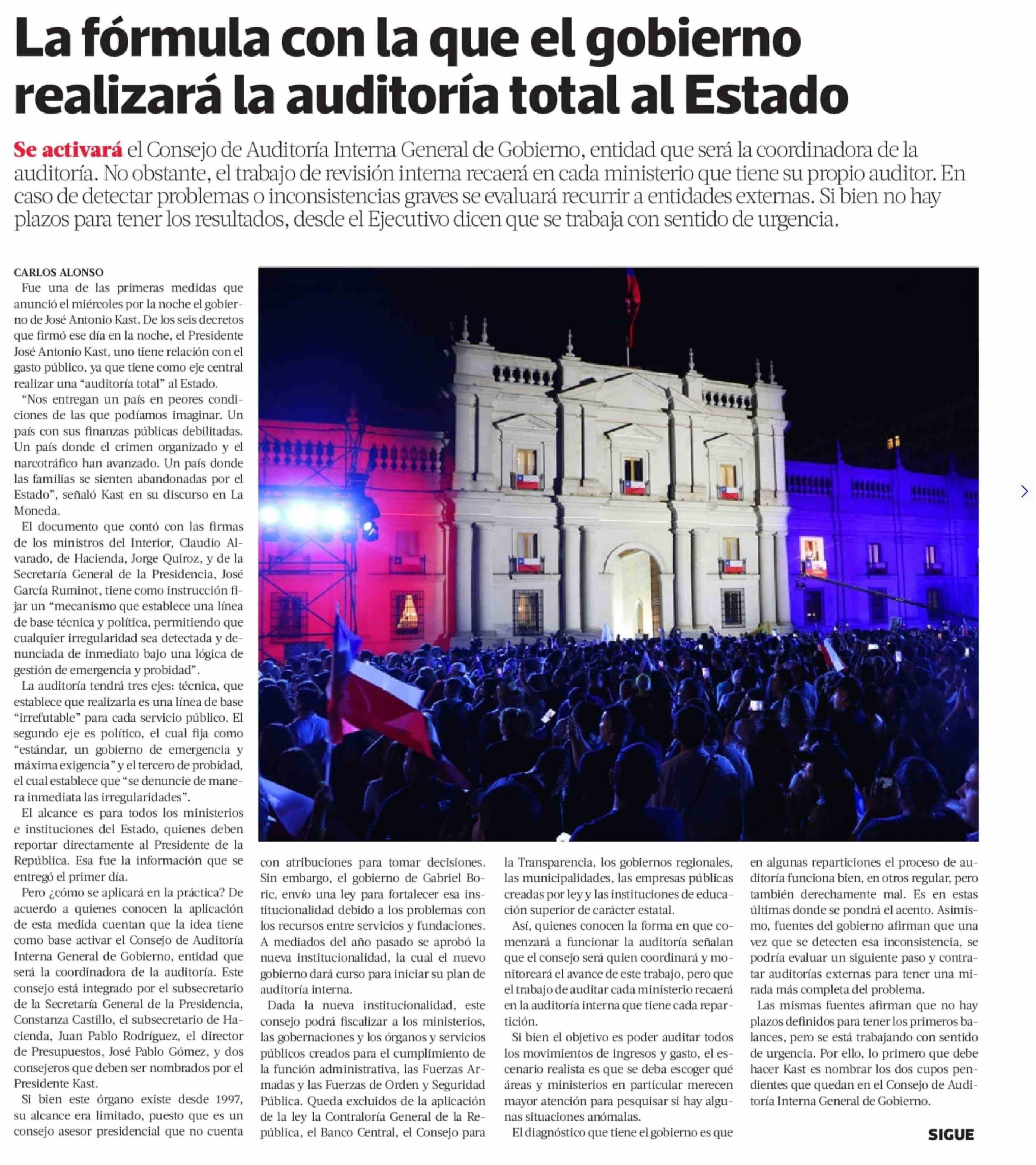 La fórmula con la que el gobierno realizará la auditoría total al Estado 13-03-2026 La Tercera |