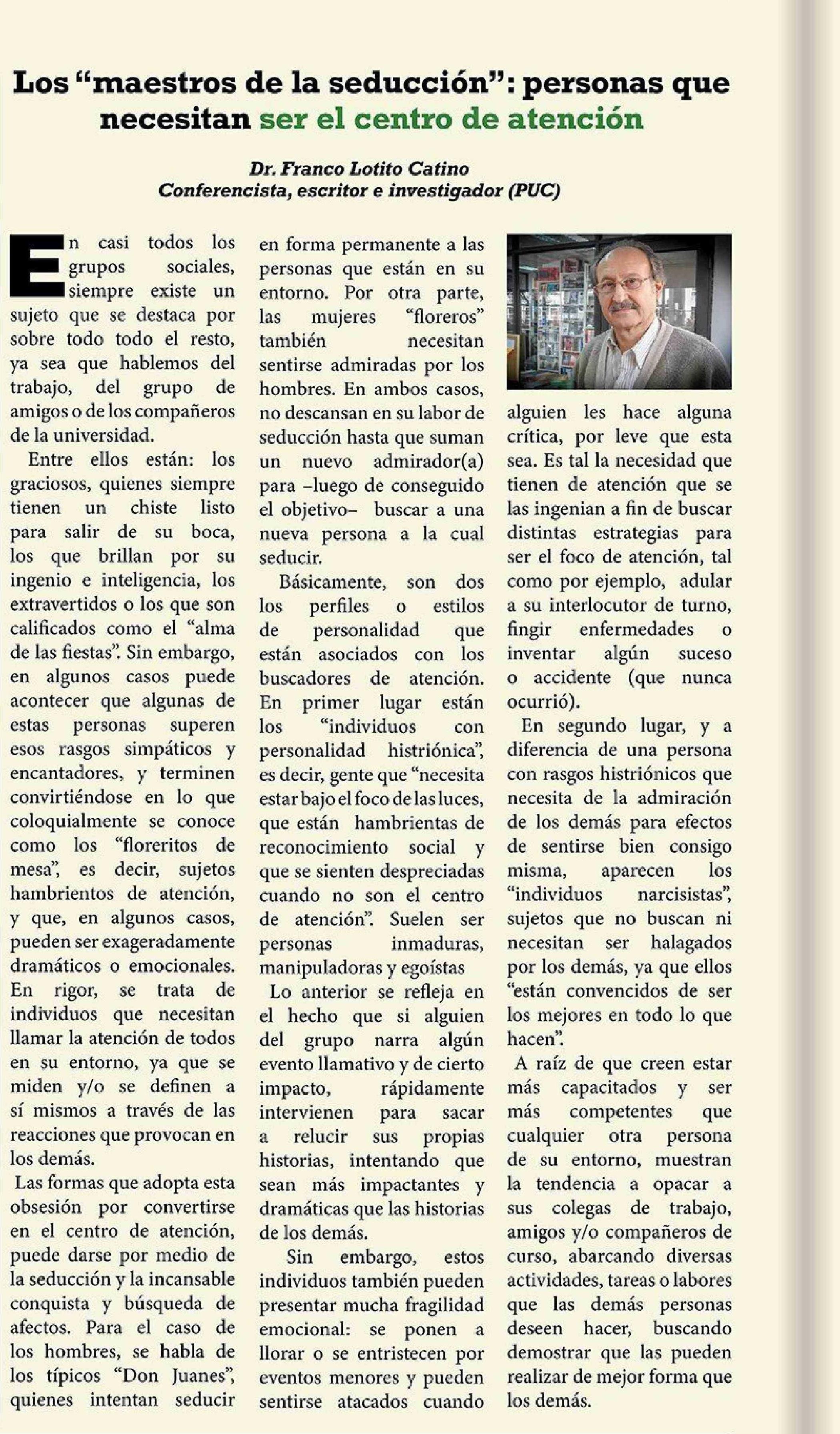 | Título: | COLUMNAS DE OPINIÓN: personas que necesitan ser el centro de atención |