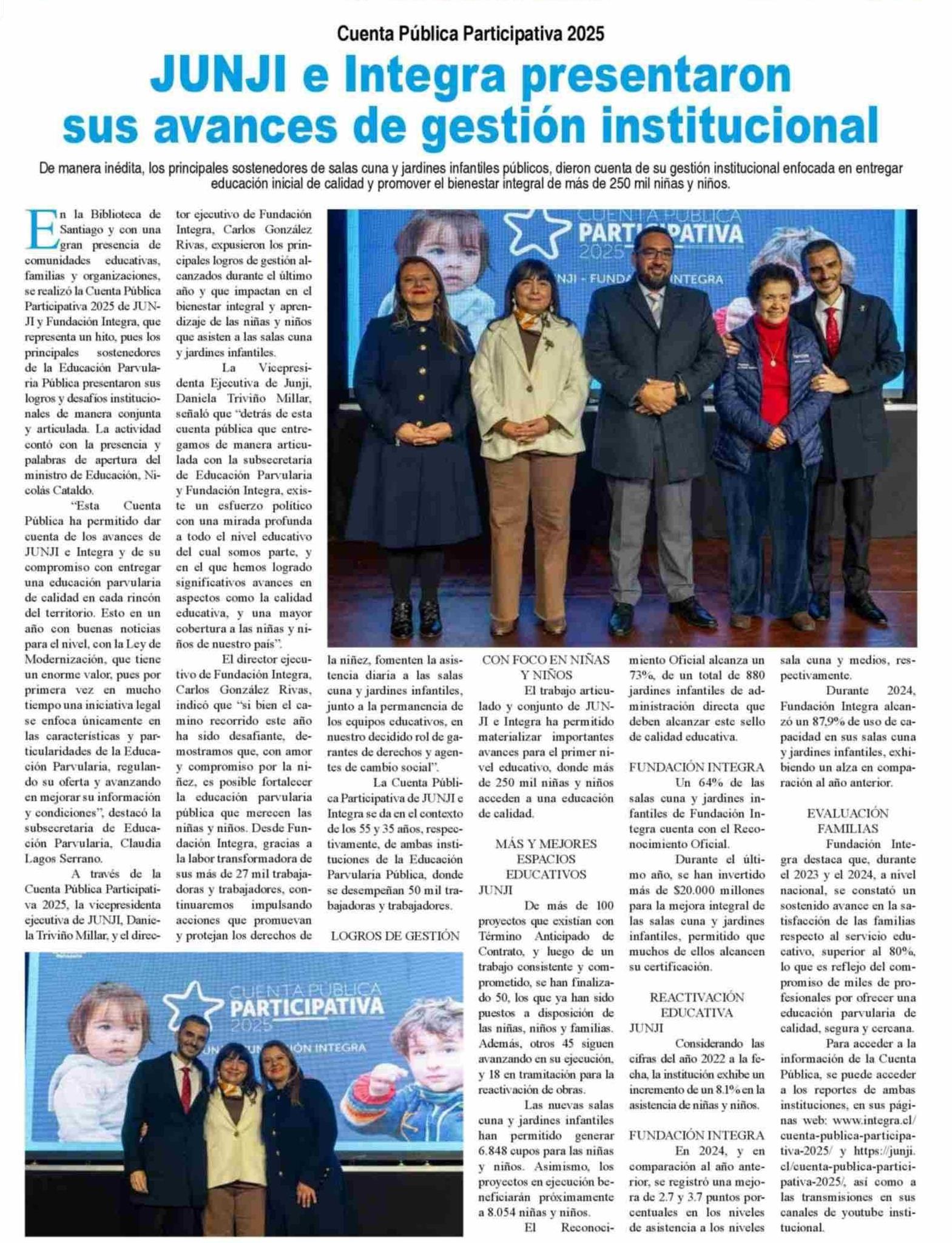 JUNJI e Integra presentaron sus avances de gestión institucional 17-06-2025 Diario VI Región |