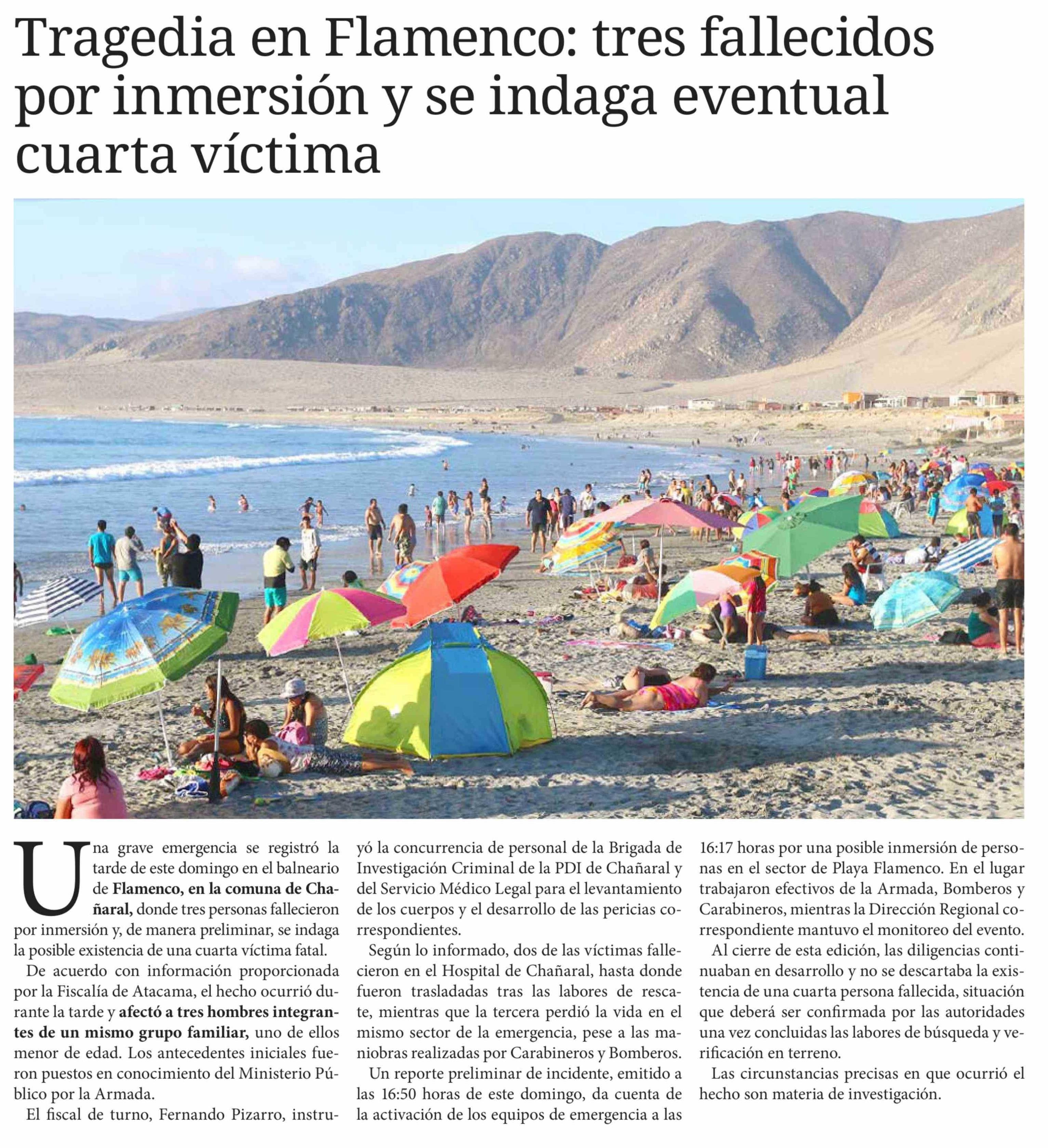 Tragedia en Flamenco: tres fallecidos por inmersión y se indaga eventual cuarta víctima 16-02-2026 Diario Chañarcillo |