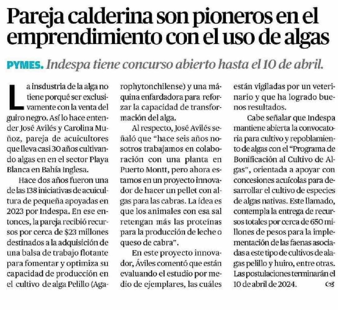 Pareja calderina son pioneros en el emprendimiento con el uso de algas 25-03-2024 El Diario de Atacama |