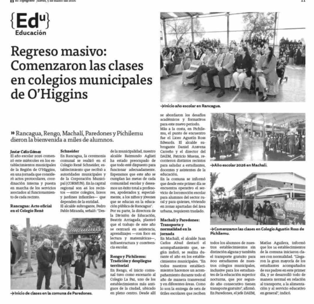 Regreso masivo: Comenzaron las clases en colegios municipales de O'Higgins 05-03-2026 El Tipógrafo |