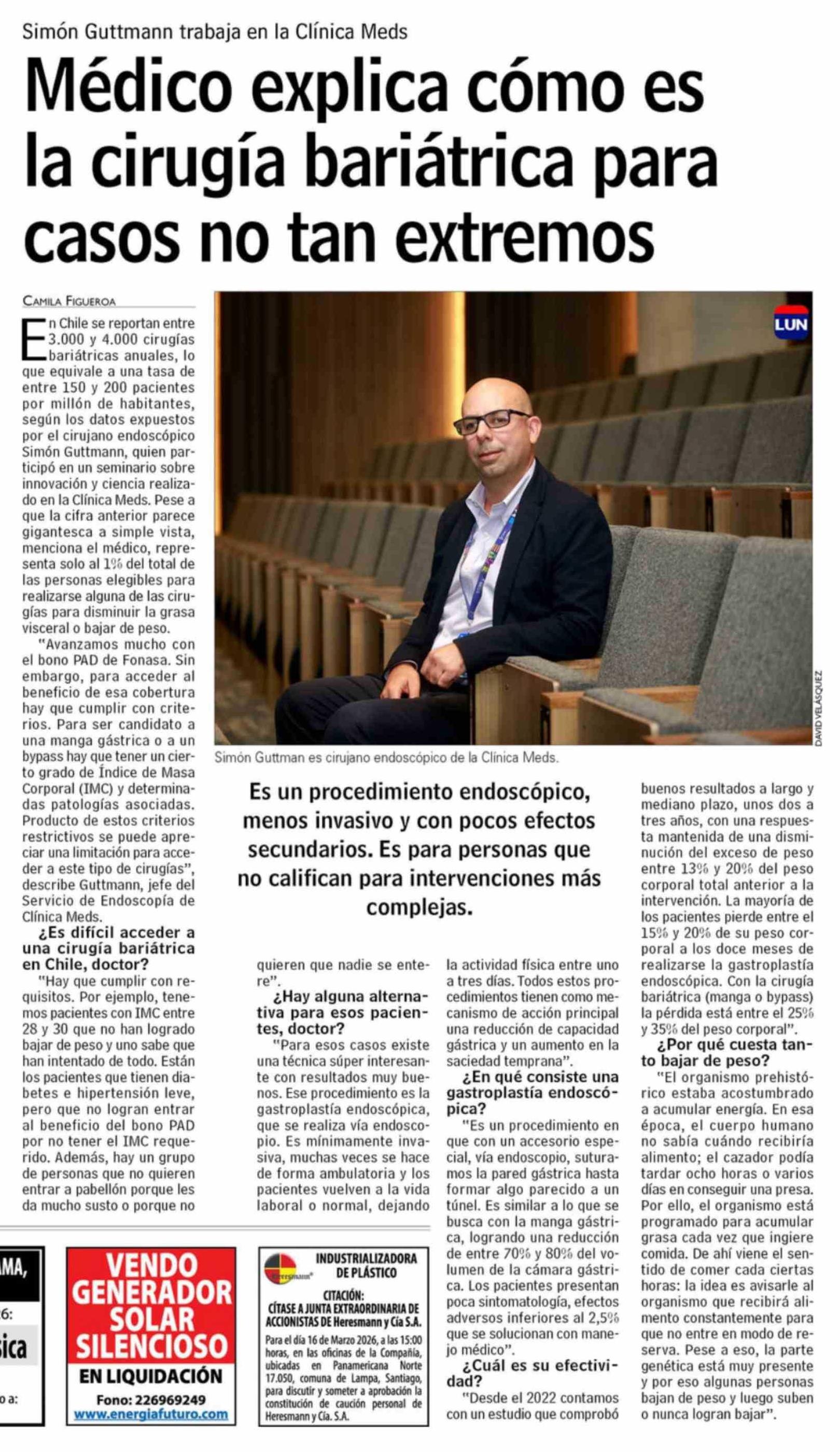 Médico explica cómo es la cirugía bariátrica para casos no tan extremos 05-03-2026 Las Últimas Noticias |