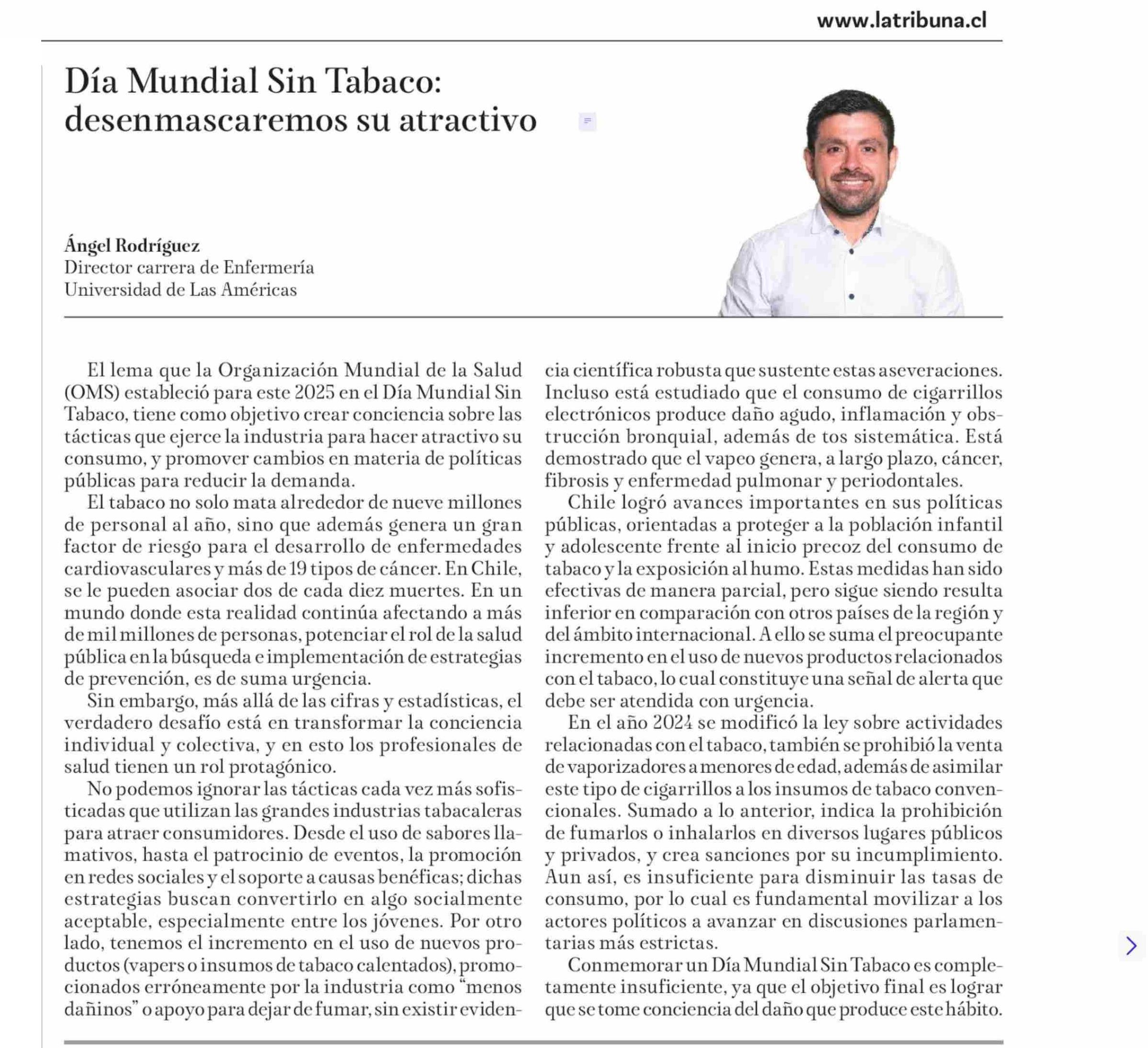 Día Mundial Sin Tabaco: desenmascaremos su atractivo 31-05-2025 La Tribuna |