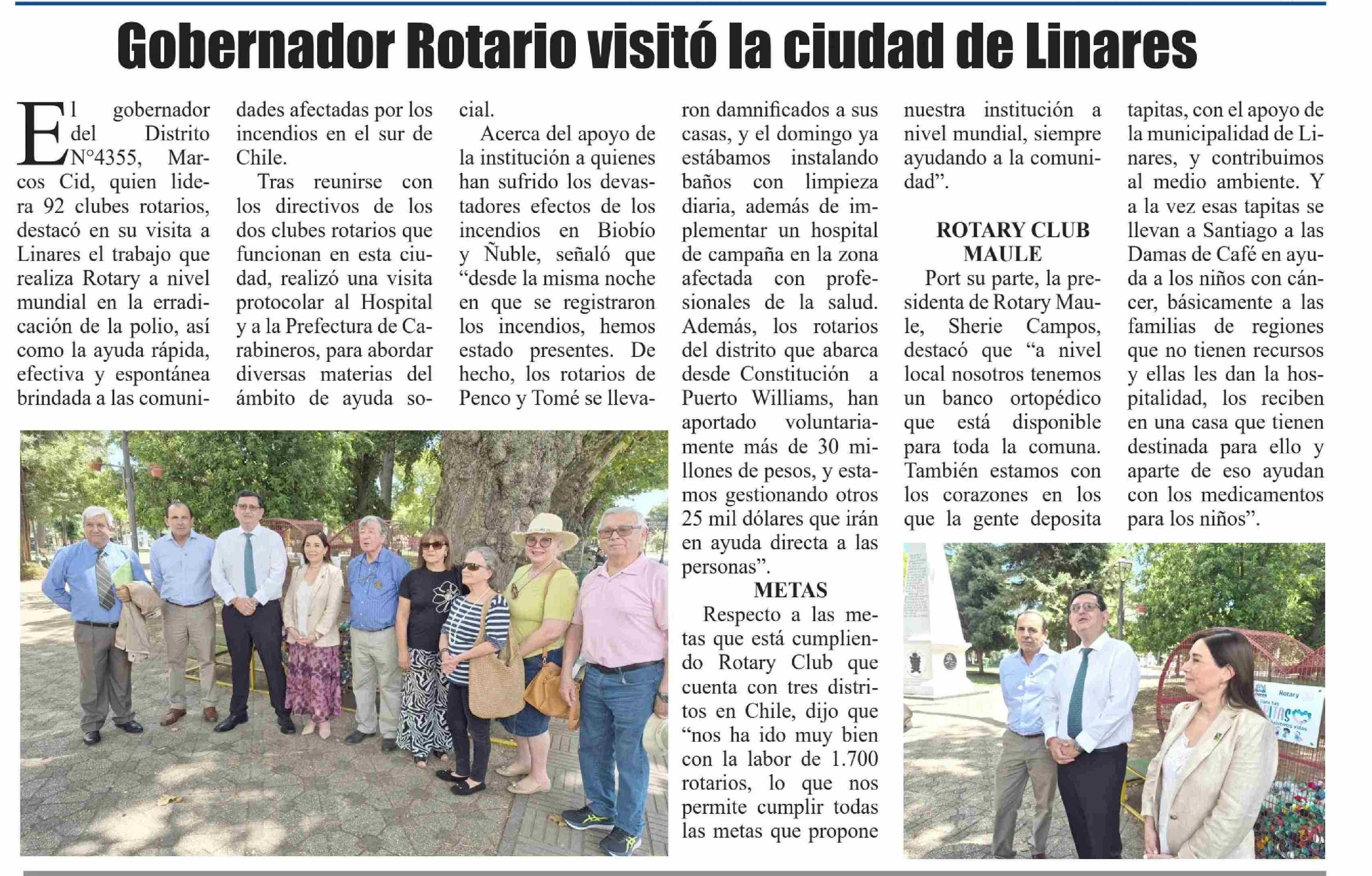 Gobernador Rotario visitó la ciudad de Linares 28-01-2026 El Heraldo |