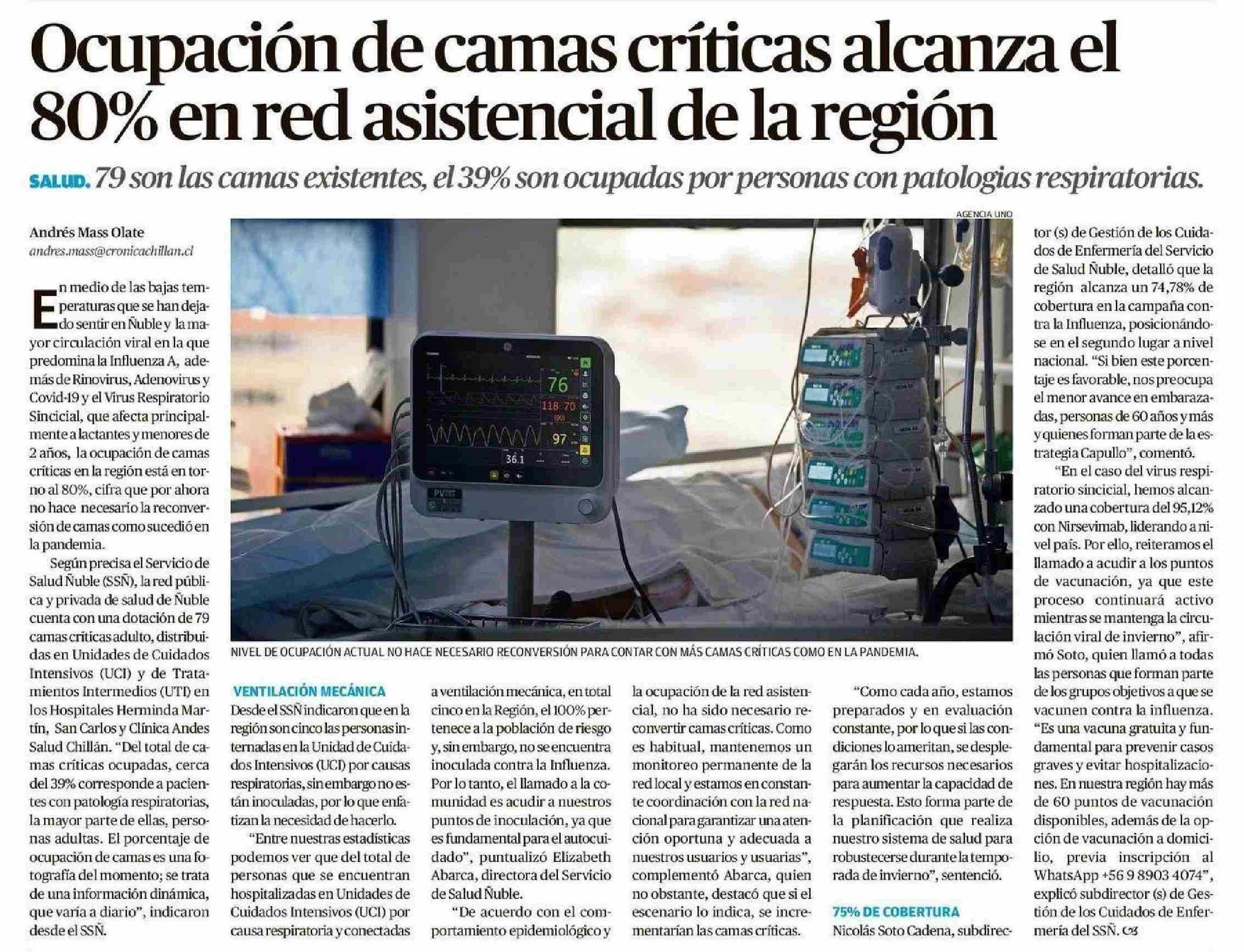 Título: Ocupación de camas críticas alcanza el 80% en red asistencial de la región