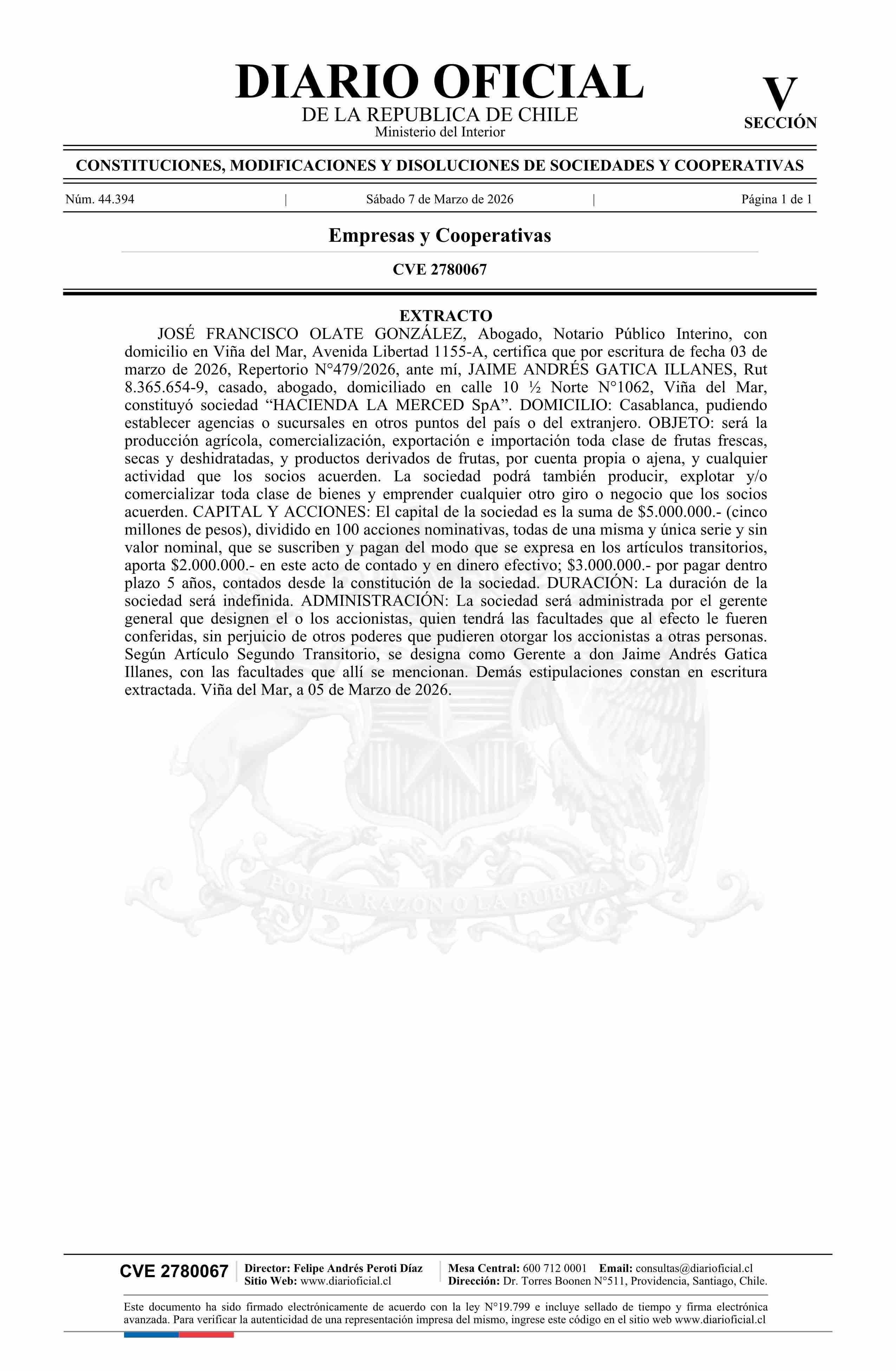 Título: HACIENDA LA MERCED SpA