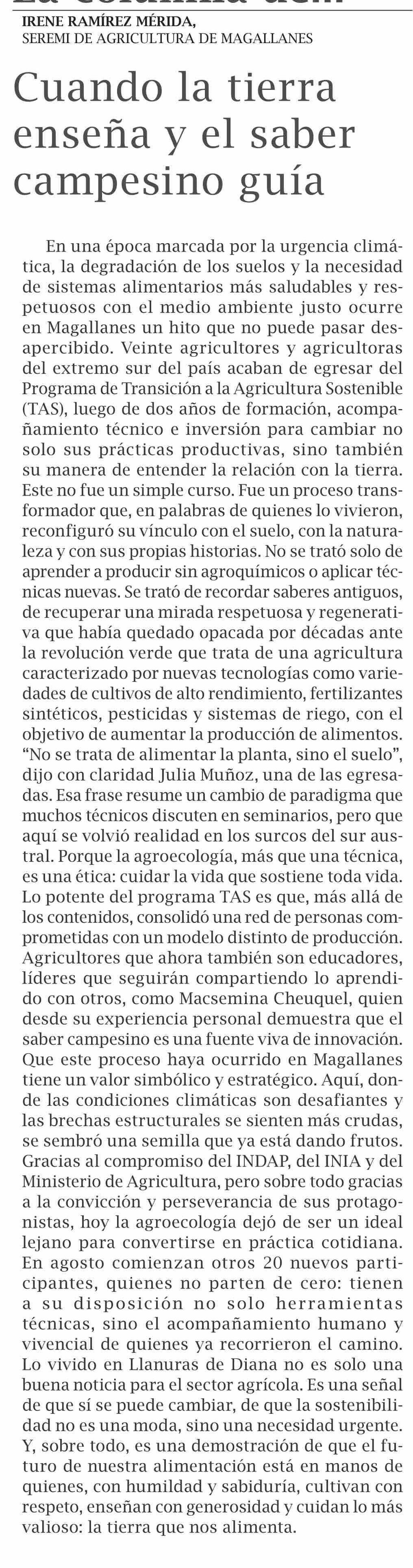 | Título: | Columnas de Opinión: Cuando la tierra enseña y el saber campesino guía |