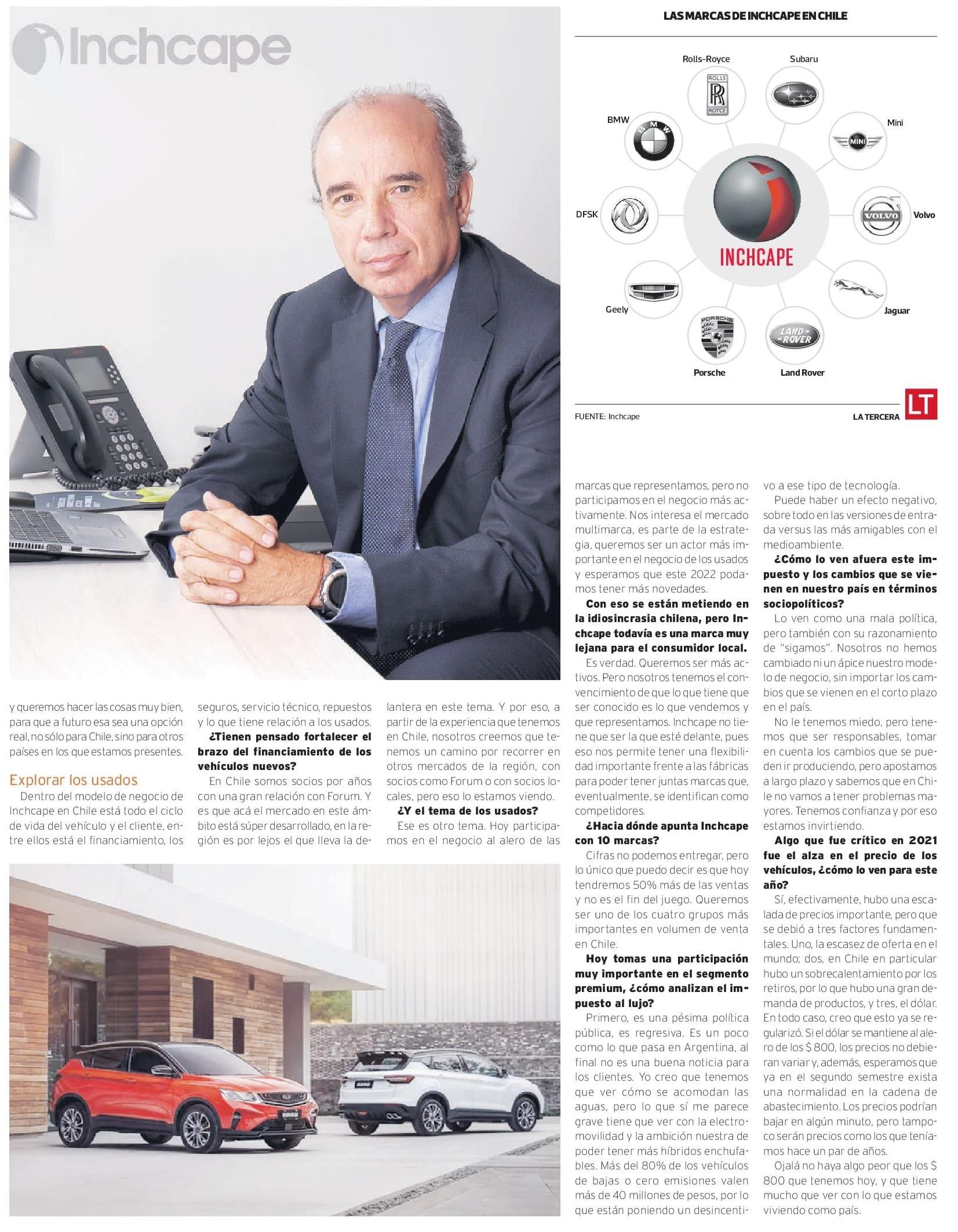 “Apostamos a largo plazo y sabemos que en Chile no vamos a tener problemas mayores” 13-02-2022 La Tercera |