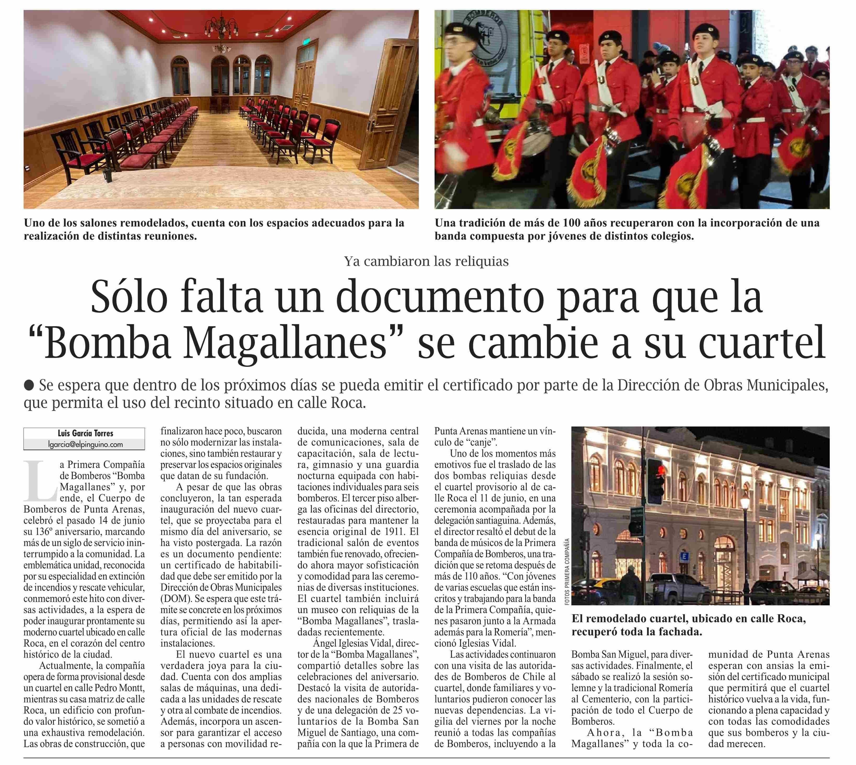 Sólo falta un documento para que la Bomba Magallanes se cambie a su cuartel 18-06-2025 El Pingüino |