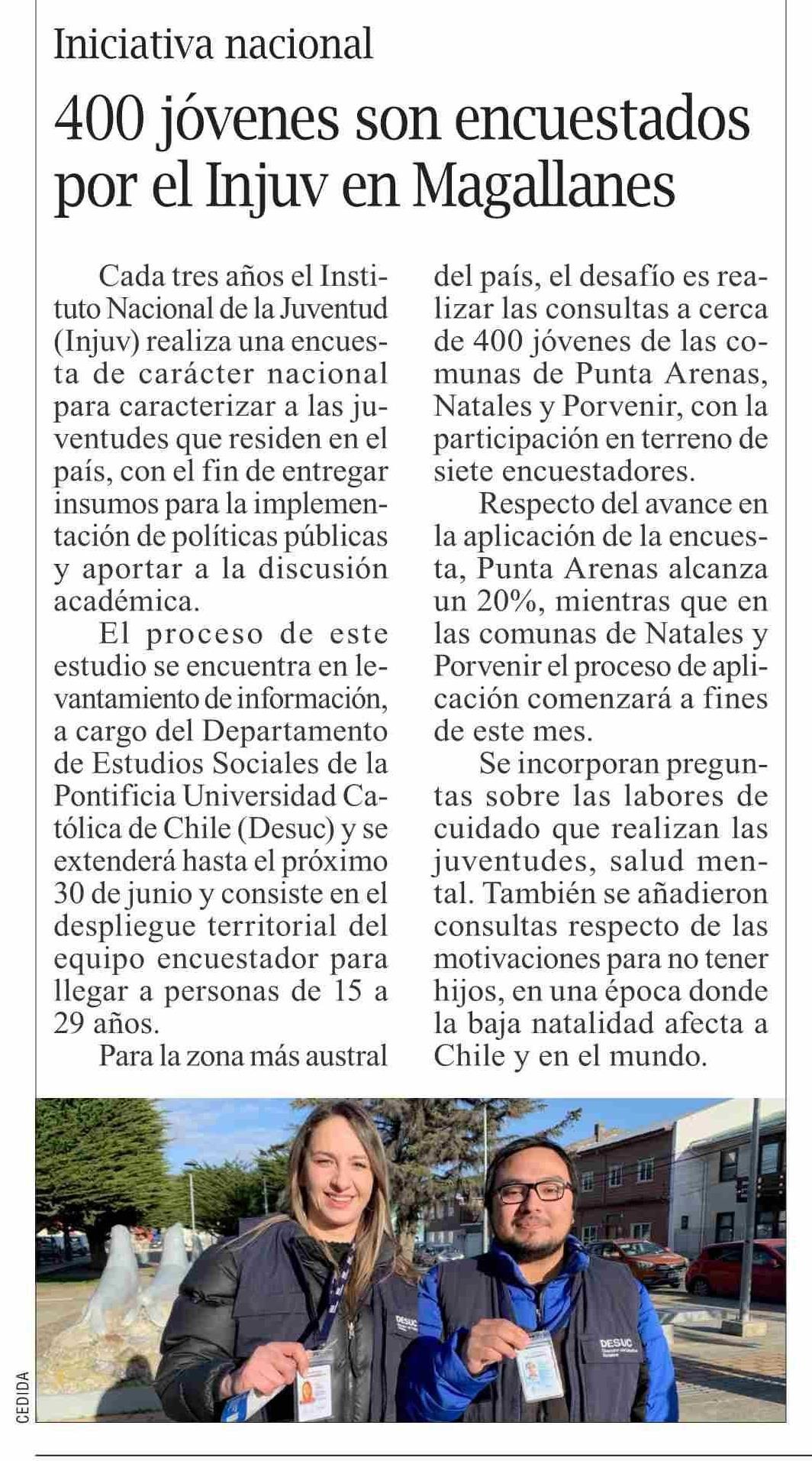 400 Jóvenes son encuestados por el Injuv en Magallanes 21-05-2025 El Pingüino |