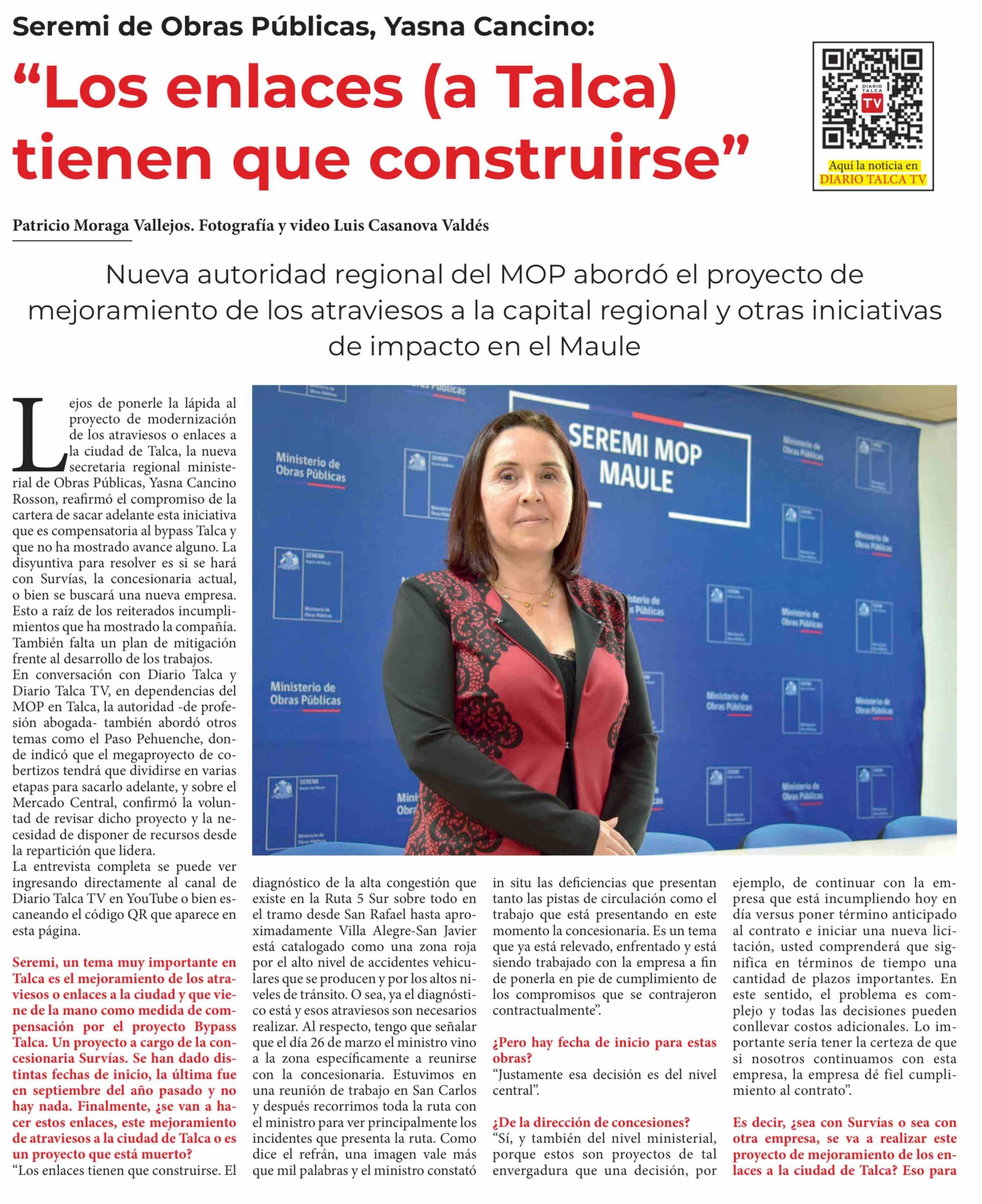 "Los enlaces (a Talca) tienen que construirse" 19-04-2026 Diario Talca |