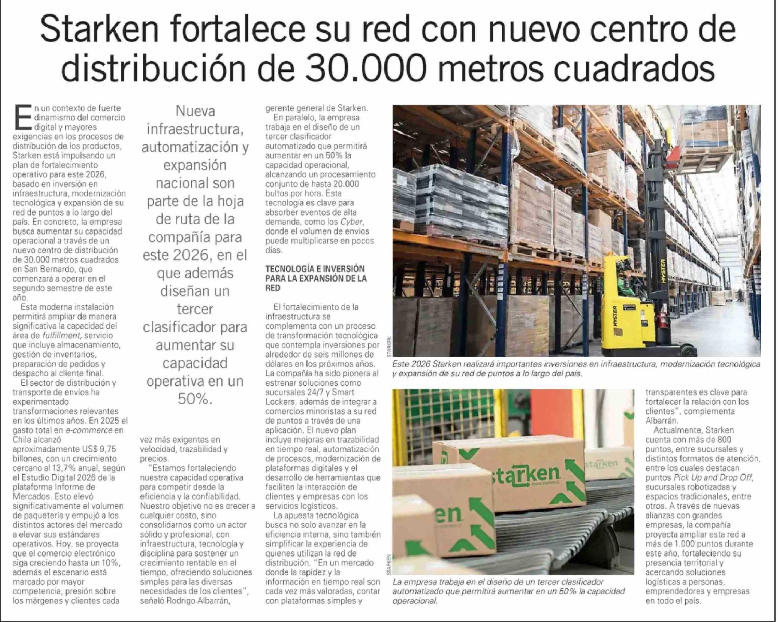 Starken fortalece su red con nuevo centro de distribución de 30.000 metros cuadrados 11-03-2026 El Mercurio |