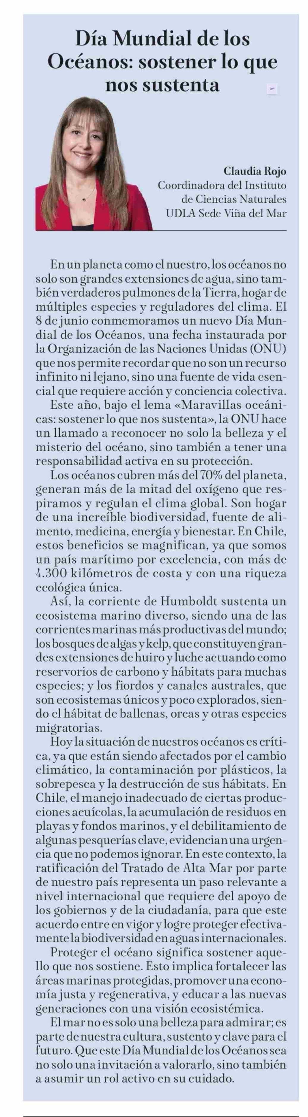 Día Mundial de los Océanos: sostener lo que nos sustenta 10-06-2025 La Tribuna |