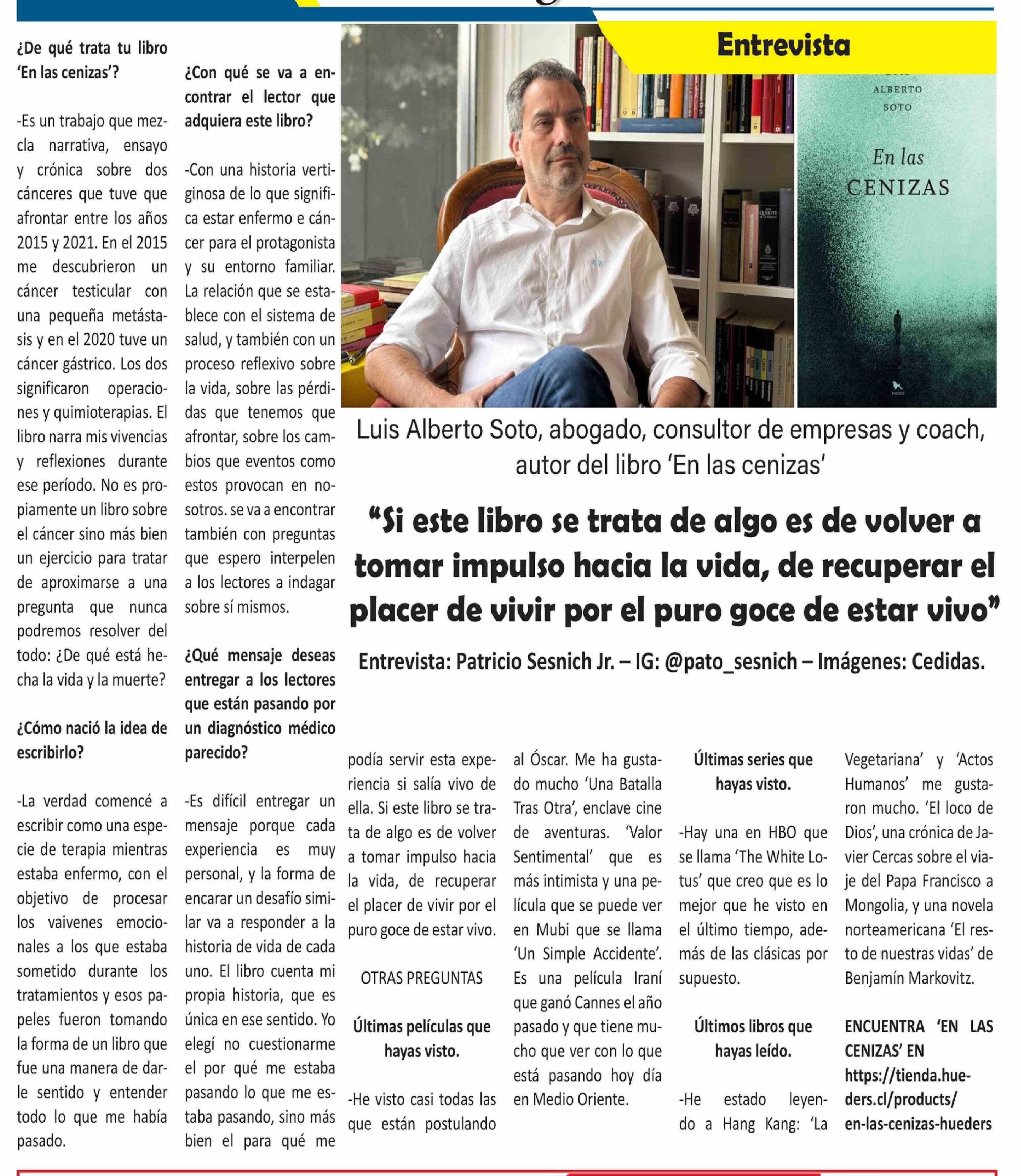 "Si este libro se trata de algo es de volver a tomar impulso hacia la vida, de recuperar el placer de vivir por el puro goce de estar vivo" 14-03-2026 El Longino |
