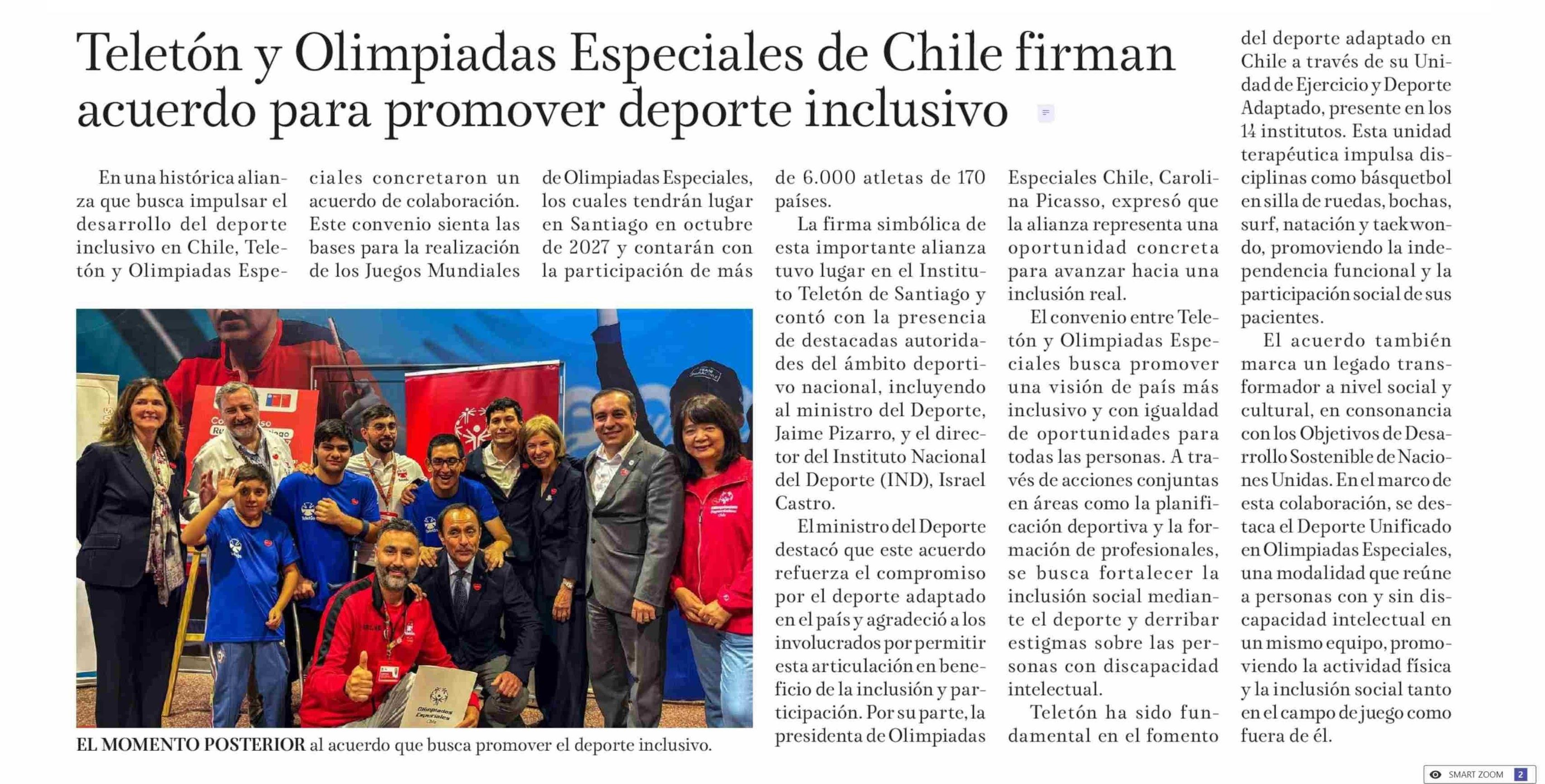 | Título: | Teletón y Olimpiadas Especiales de Chile firman acuerdo para promover deporte inclusivo |