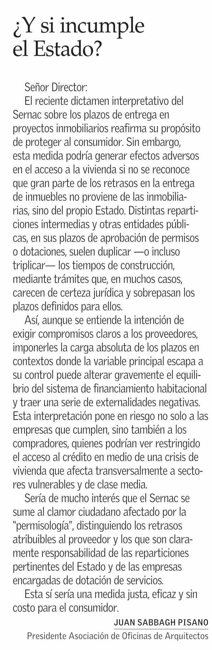 CARTAS: ¿Y si incumple el Estado? 08-05-2025 El Mercurio |