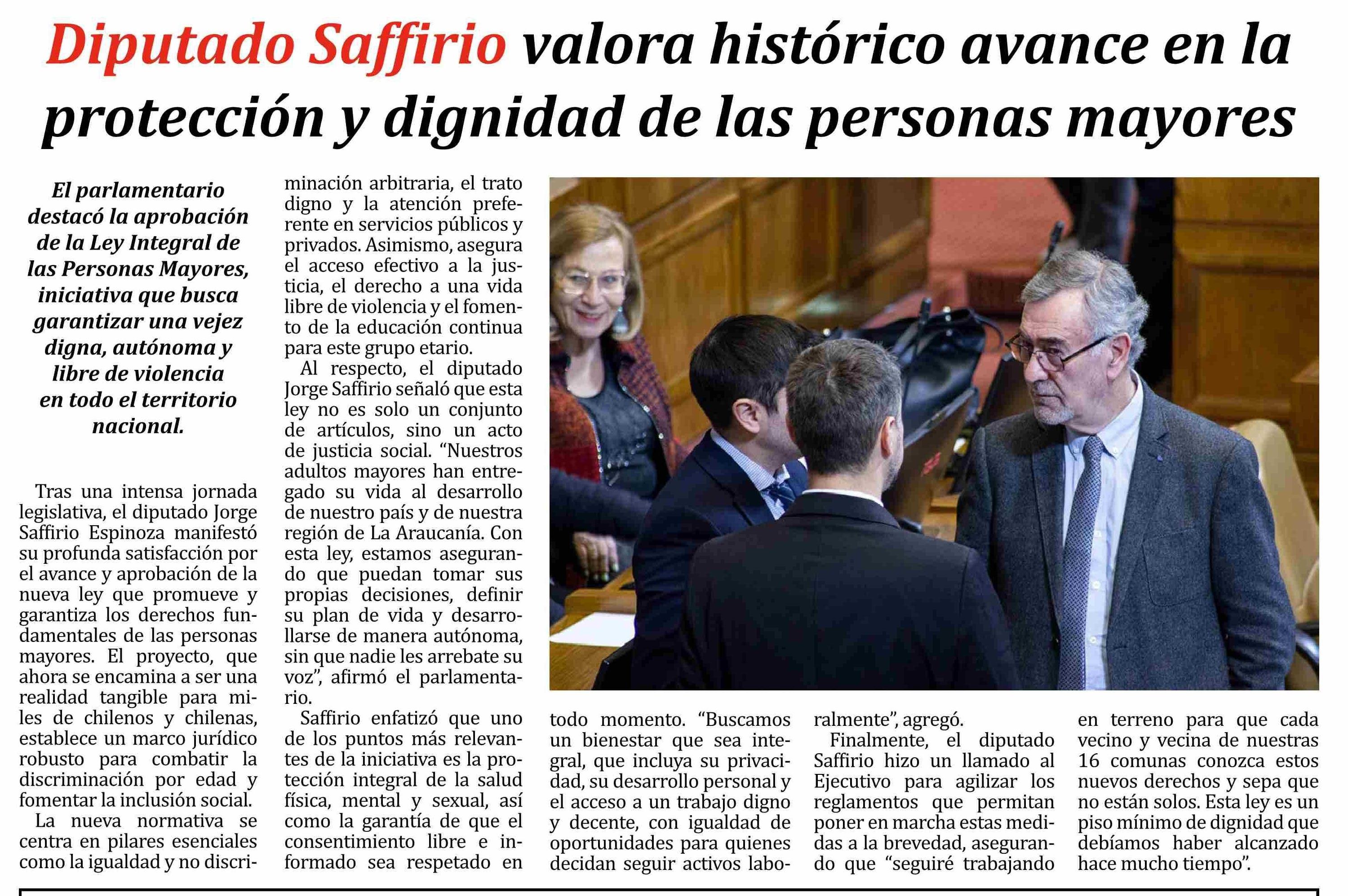 Diputado Saffirio valora histórico avance en la protección y dignidad de las personas mayores 07-01-2026 Las Noticias |