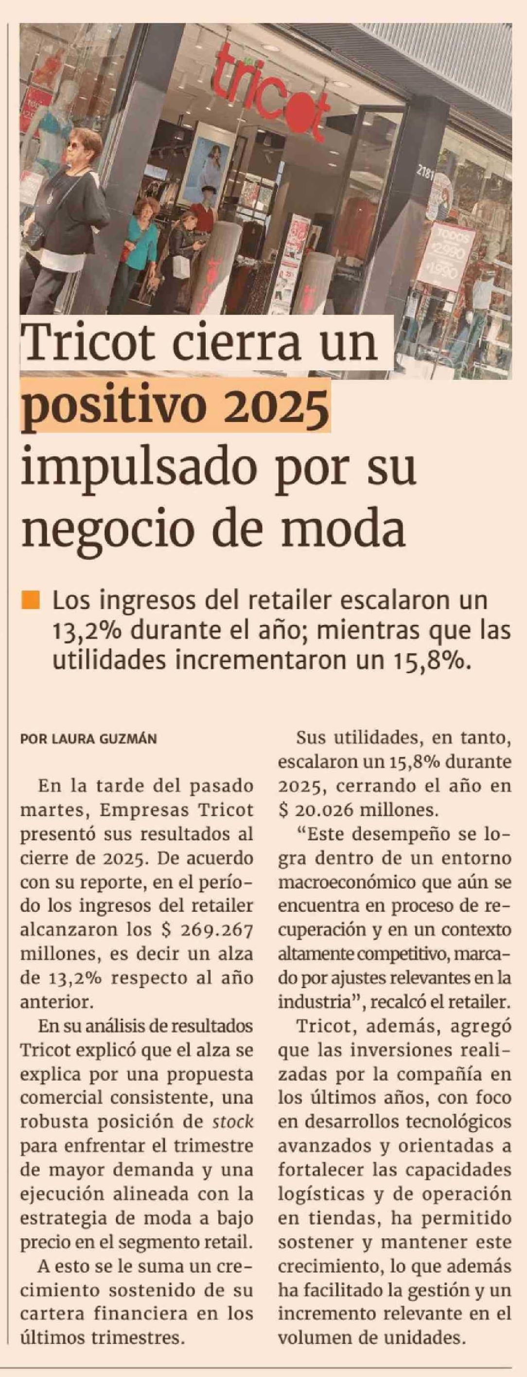 Título: Tricot cierra un positivo 2025 impulsado por su negocio de moda