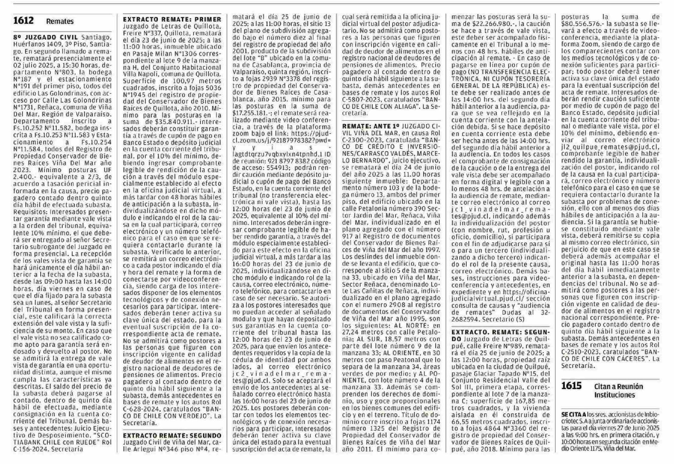 Extractos: Clasificados 09-06-2025 El Mercurio de Valparaíso |