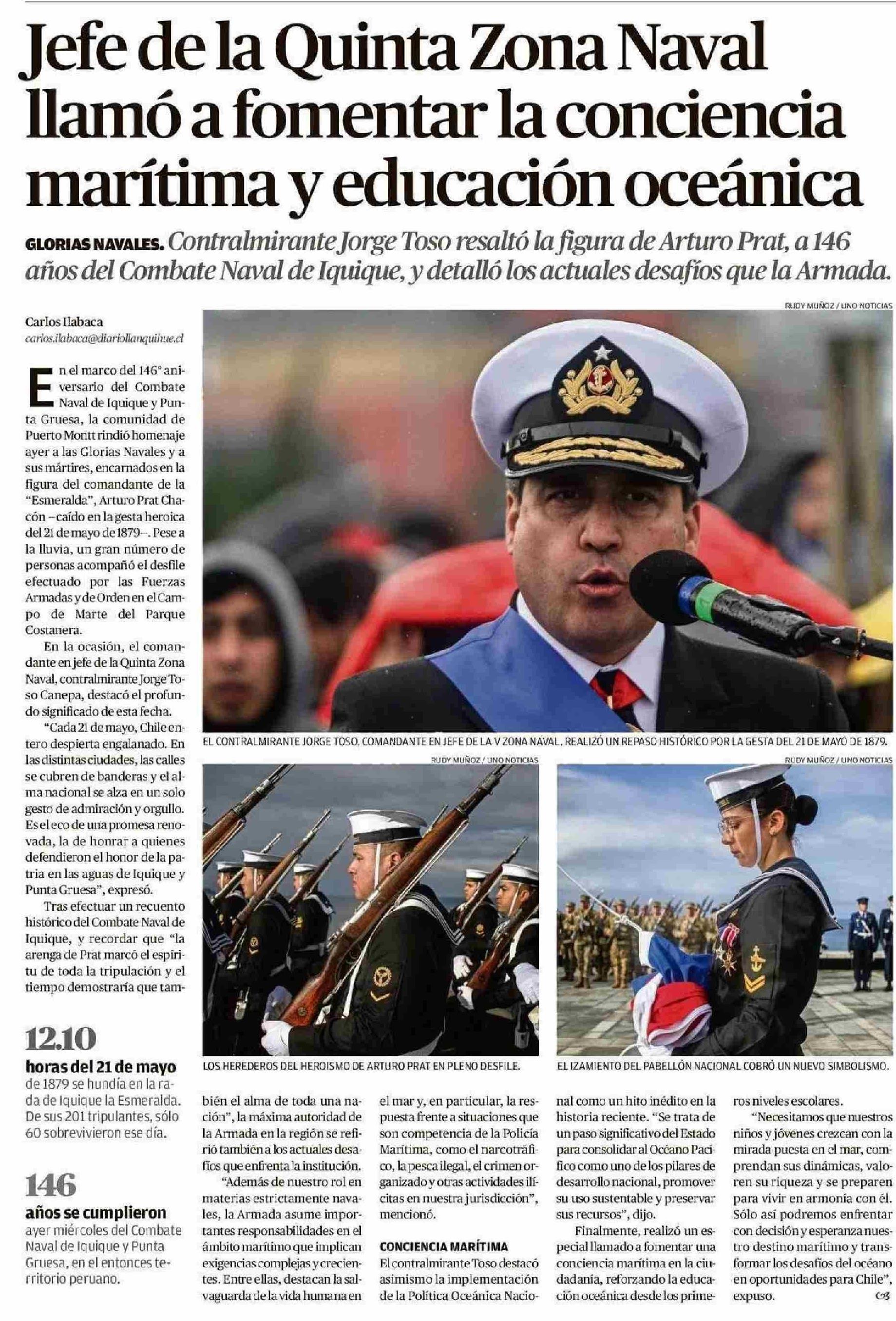 | Título: | Jefe de la Quinta Zona Naval llamó a fomentar la conciencia educacion oceanica |