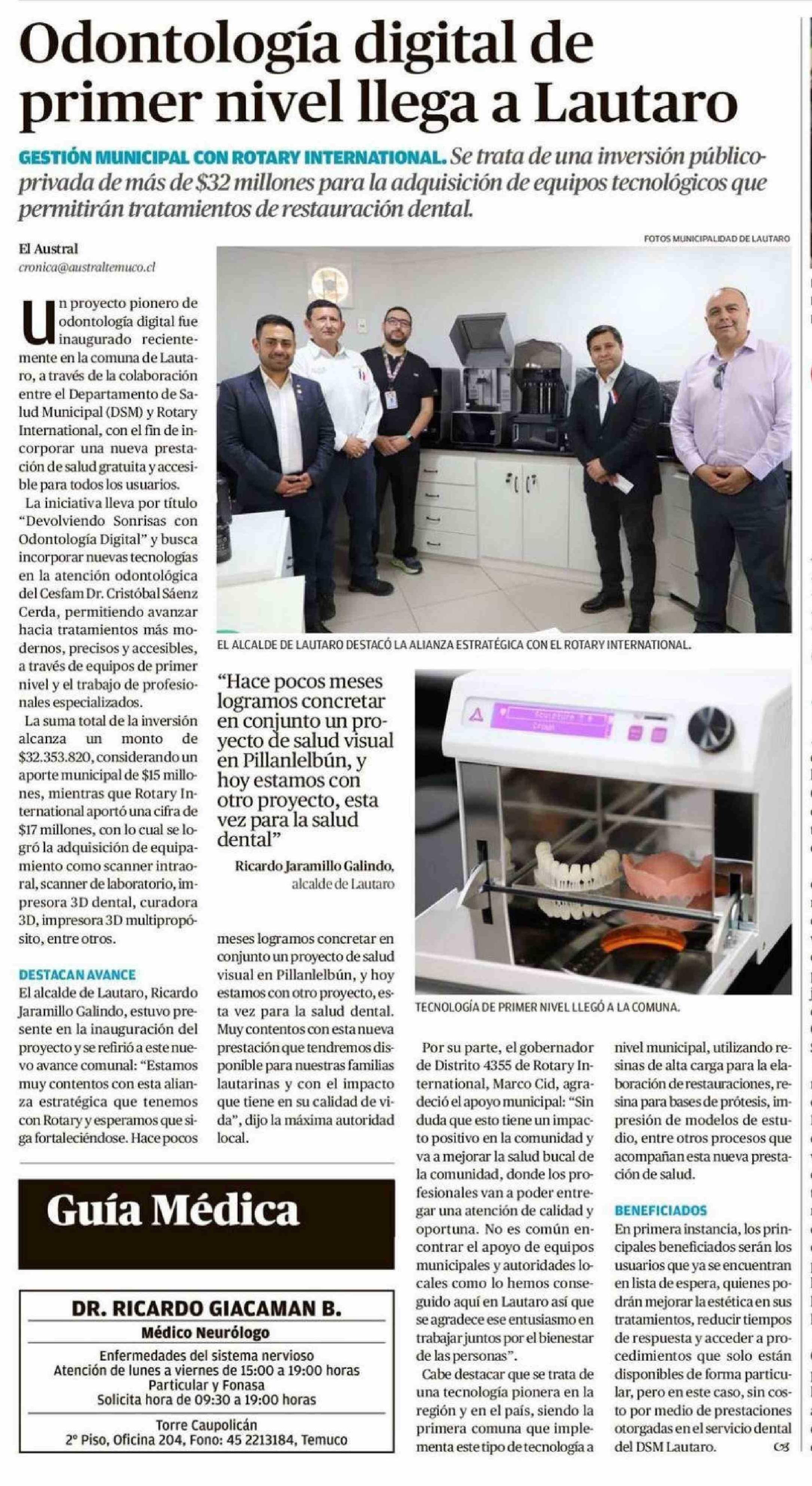 Odontología digital de primer nivel llega a Lautaro 13-01-2026 El Austral de la Araucanía |