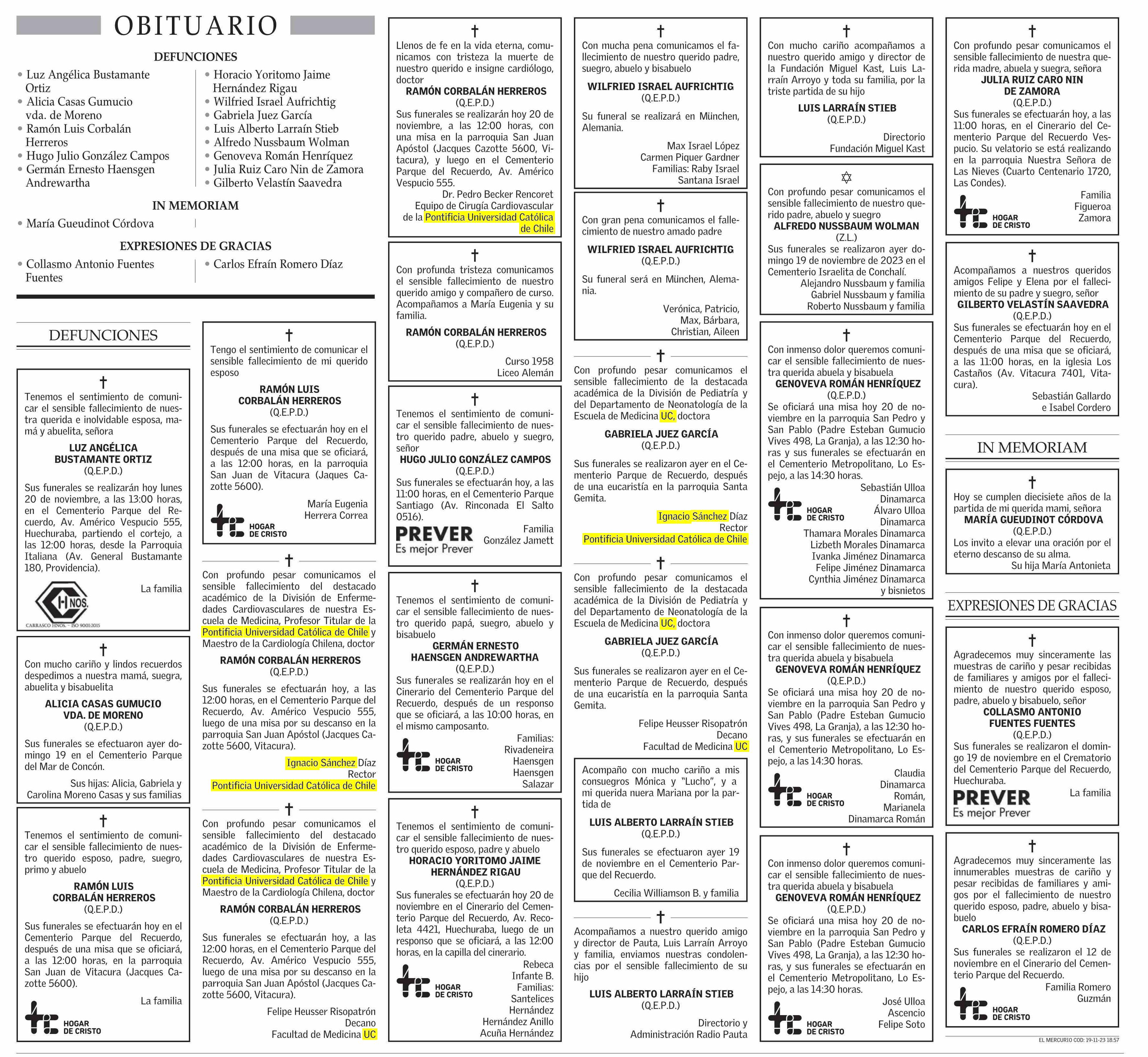 OBITUARIO 20-11-2023 El Mercurio |