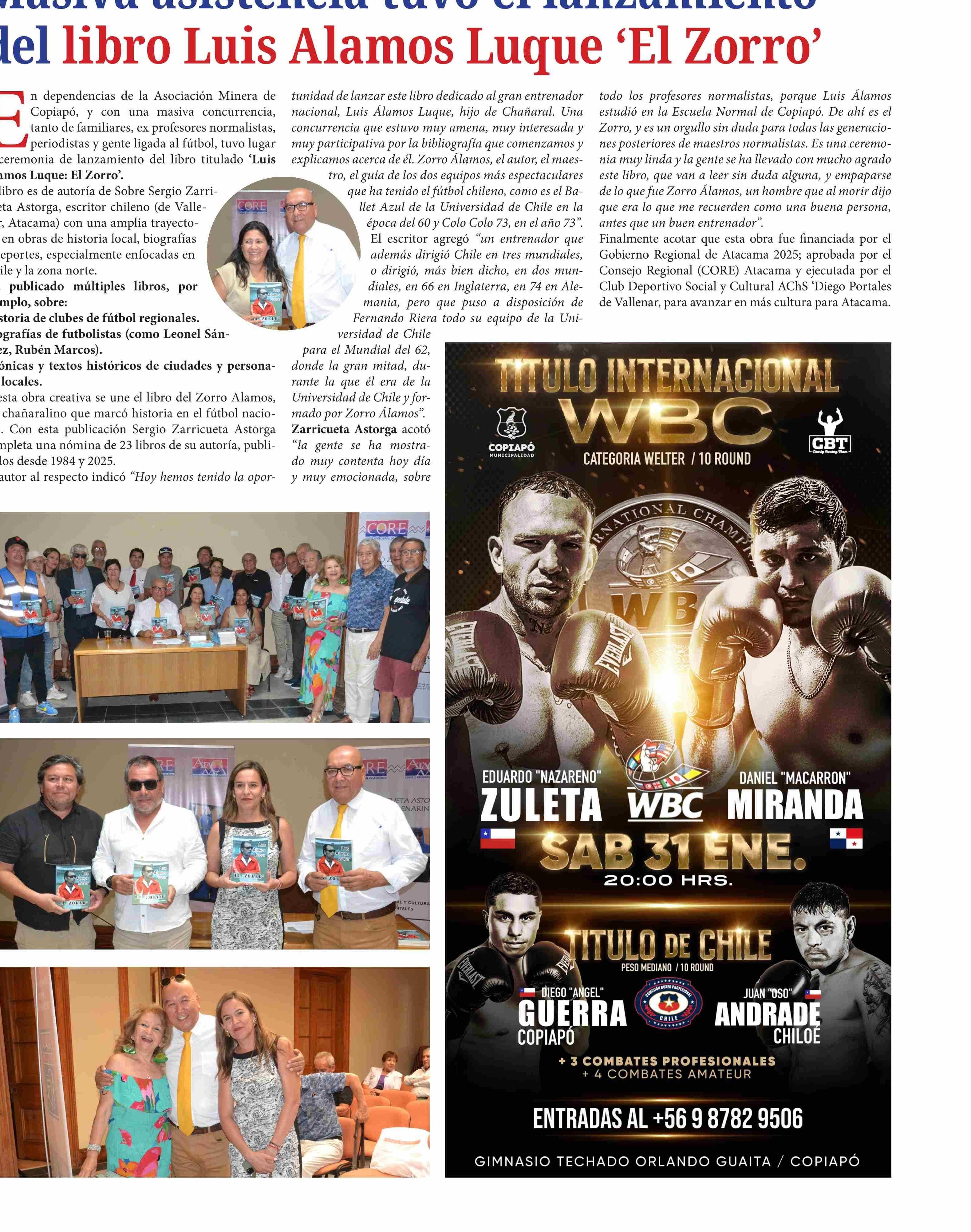 Masiva asistencia tuvo el lanzamiento del libro Luis Alamos Luque 'El Zorro' 29-01-2026 Diario Chañarcillo |