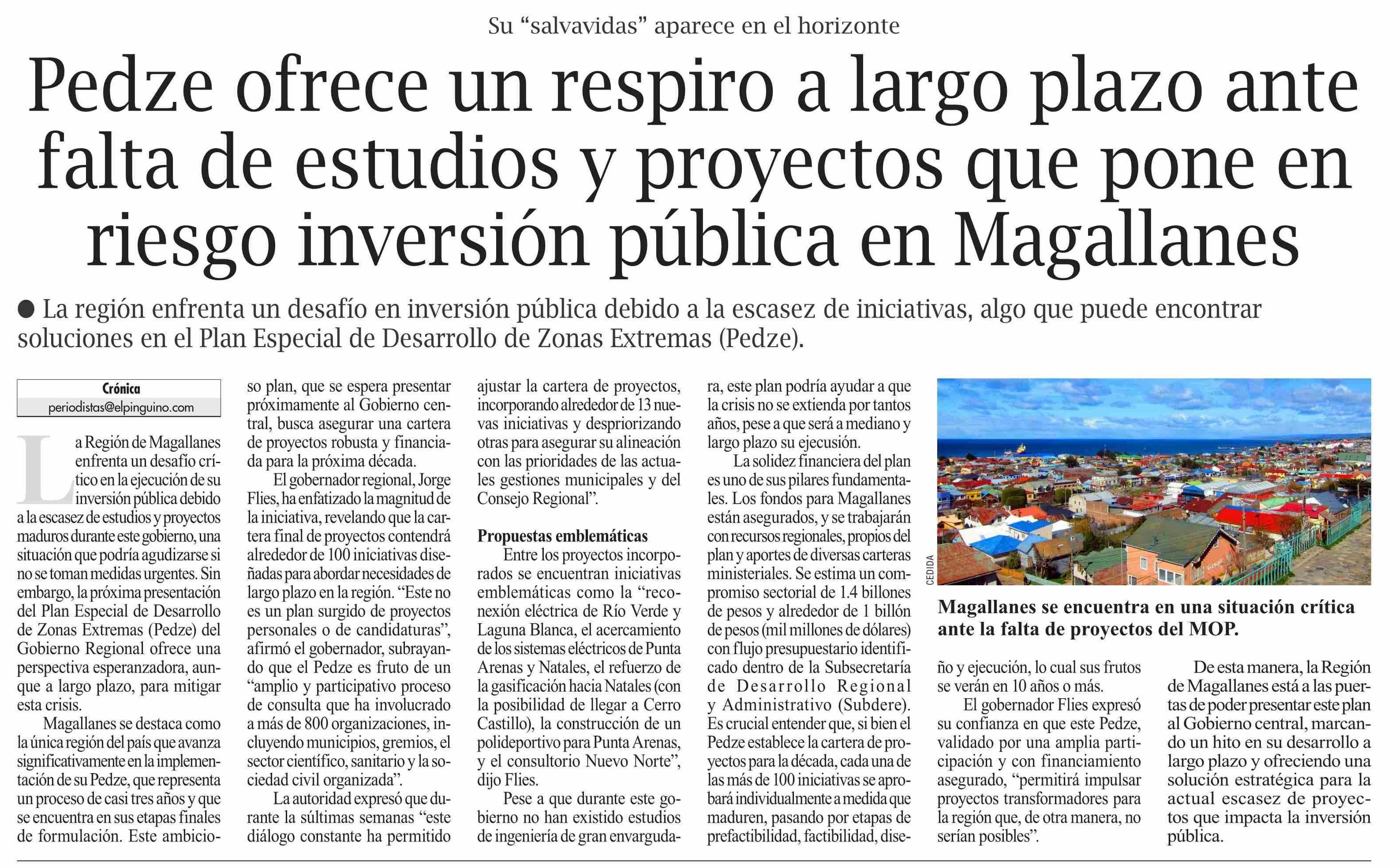 Pedze ofrece un respiro a largo plazo ante falta de estudios y proyectos que pone en riesgo inversión pública en Magallanes 09-06-2025 El Pingüino |