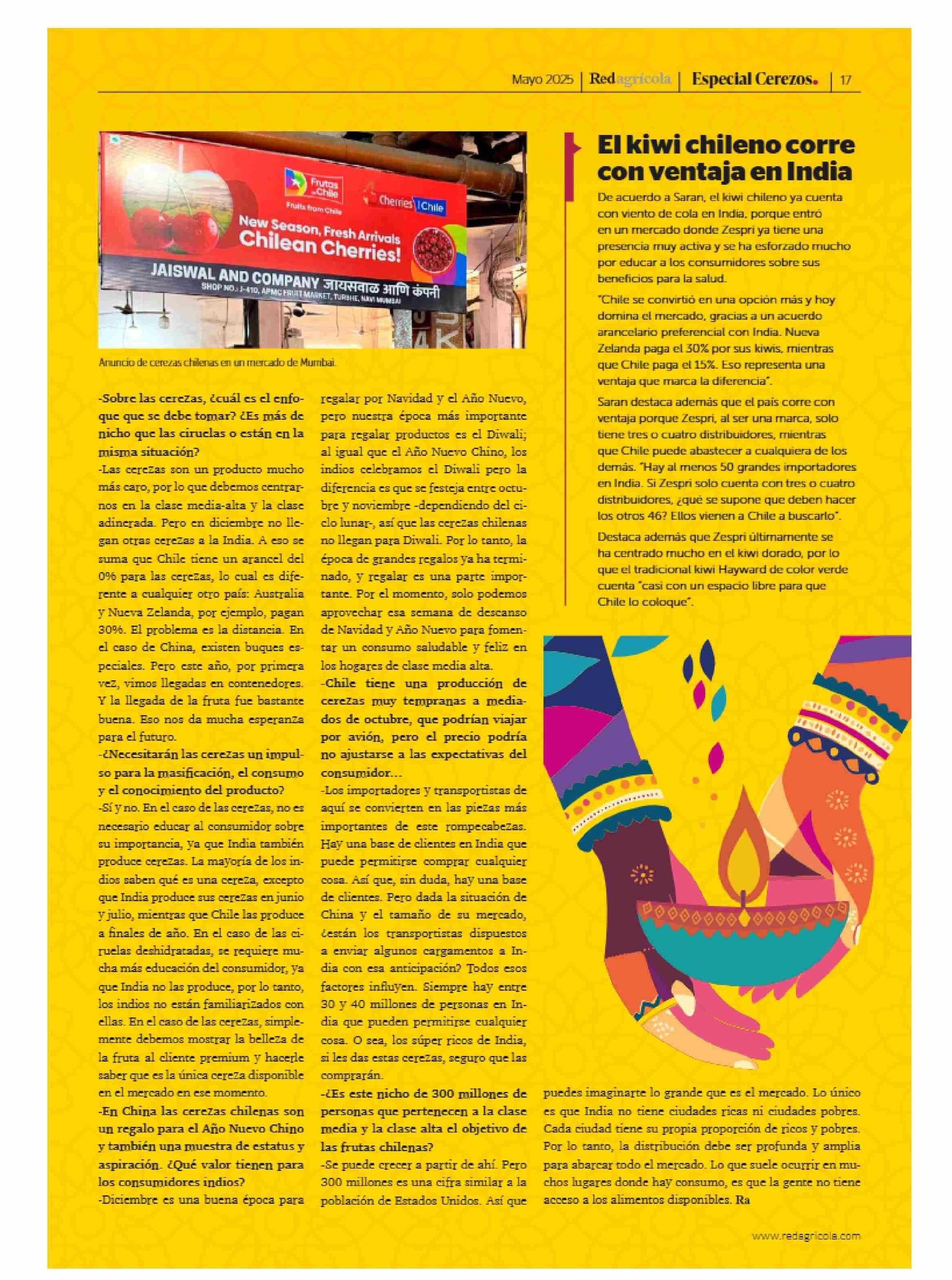Clasemedia de India: 388 millanés de oportunidades para la cereza chilena 31-05-2025 Revista Redagrícola |