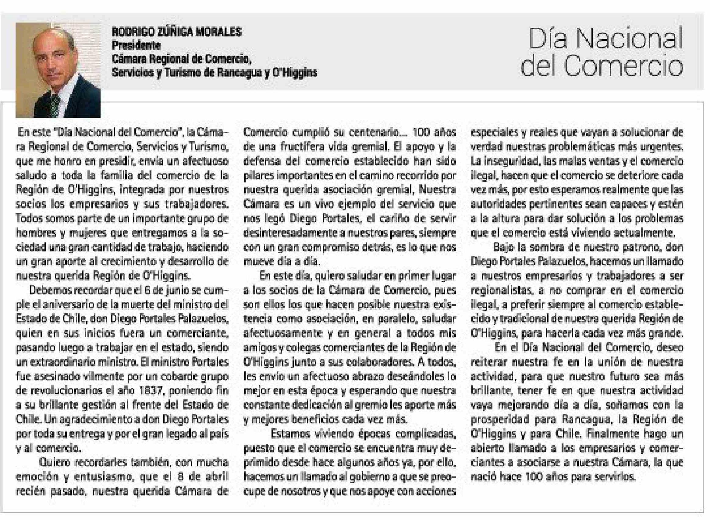 COLUMNAS DE OPINIÓN: Día Nacional del Comercio 06-06-2025 El Rancagüino |