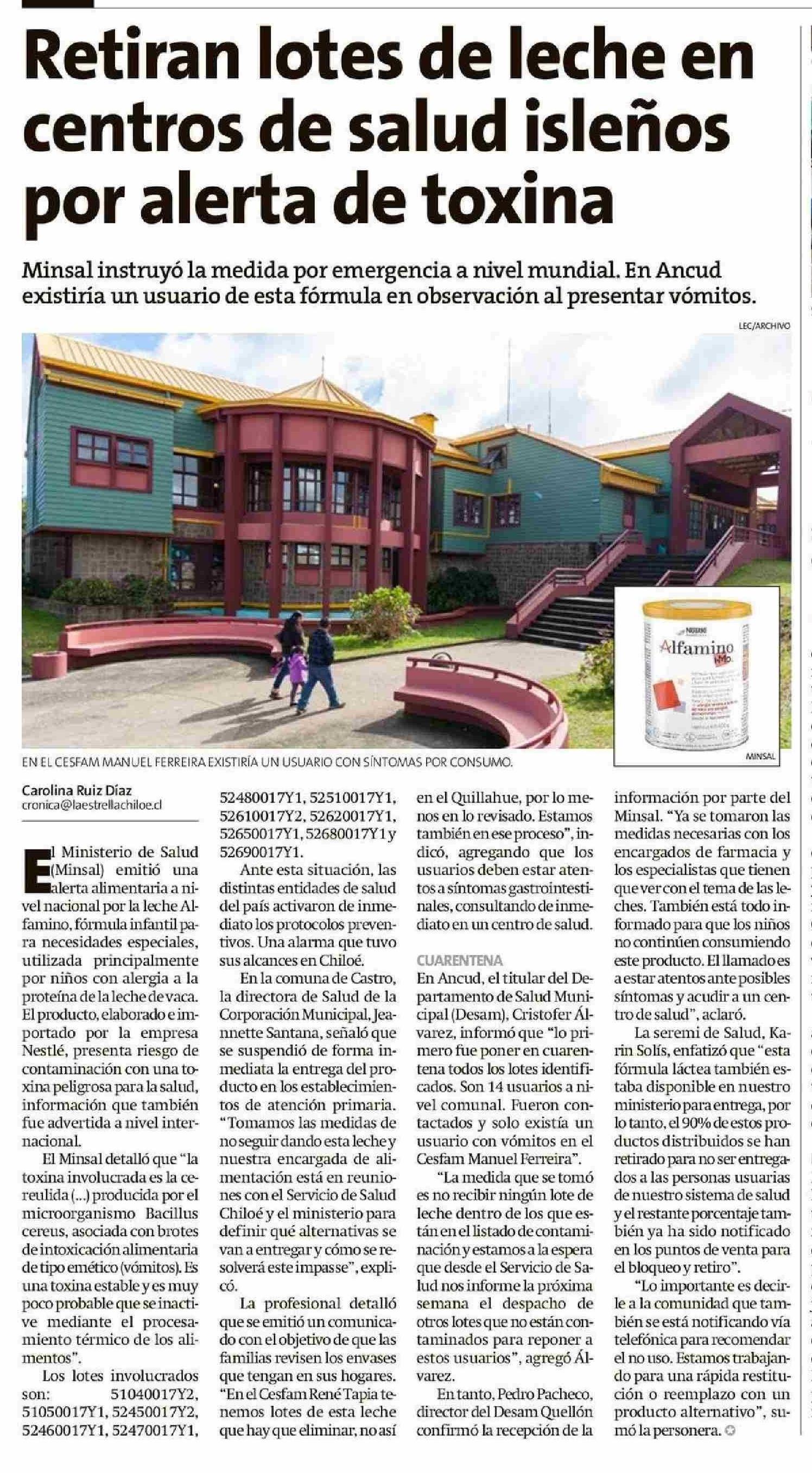 Título: Retiran lotes de leche en centros de salud isleños por alerta de toxina