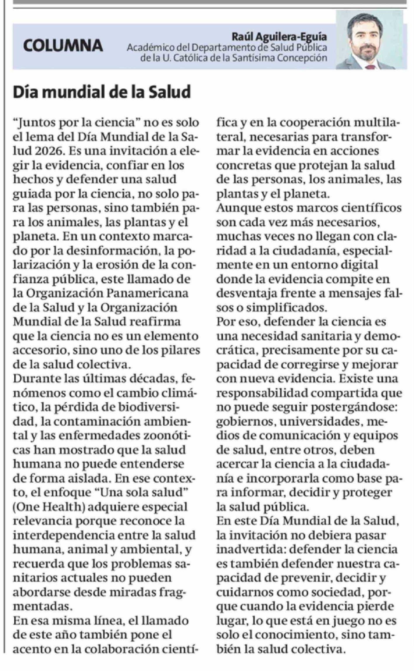 Columnas de Opinión: Día mundial de la Salud 10-04-2026 La Estrella de Concepción |