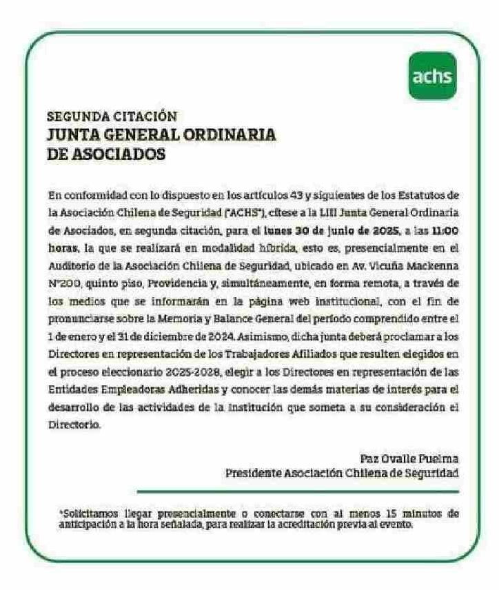 EXTRACTOS: ASOCIACIÓN CHILENA DE SEGURIDAD 17-06-2025 El Llanquihue |
