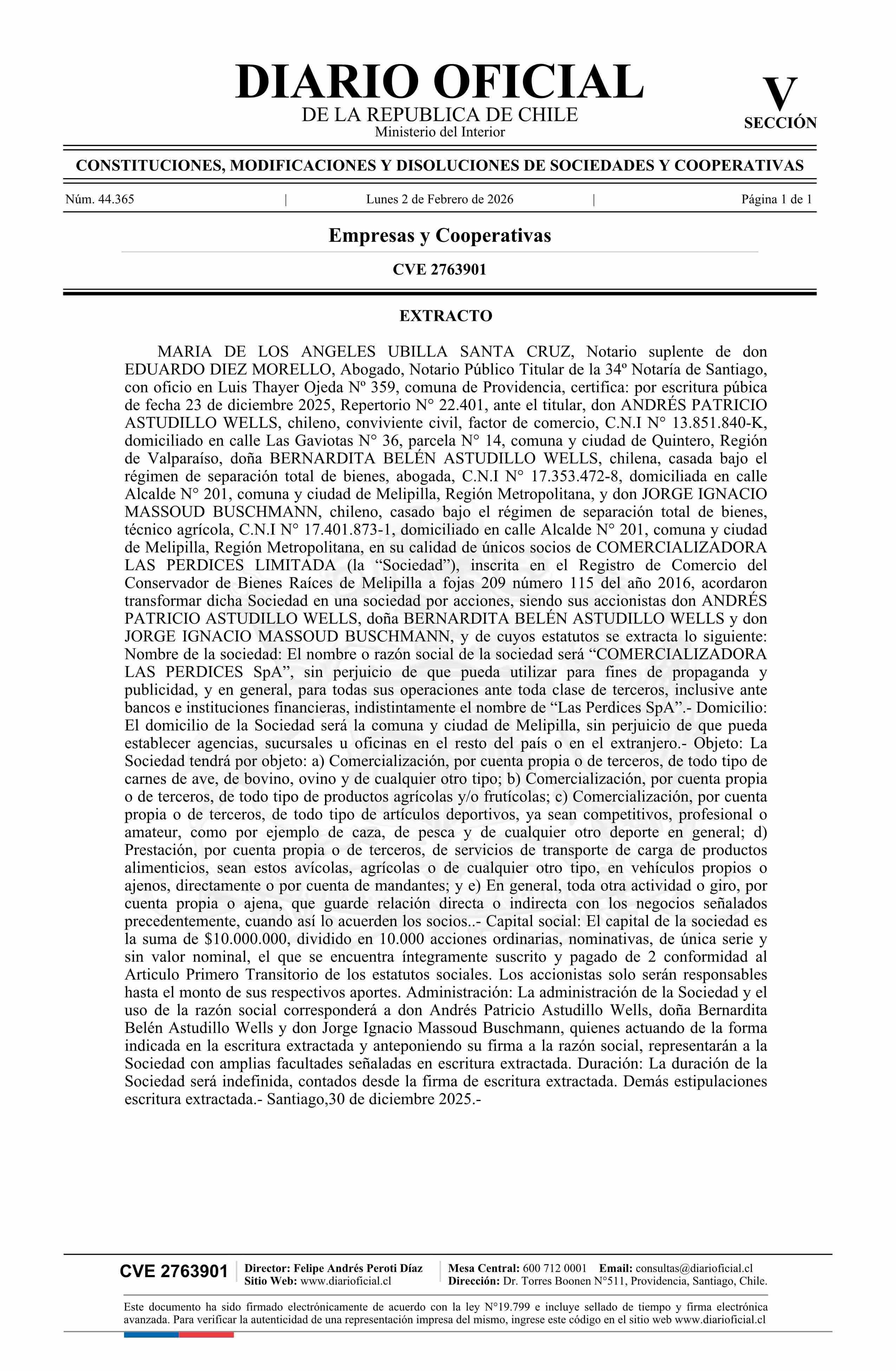 Título: COMERCIALIZADORA LAS PERDICES LIMITADA 76.574.901-8*