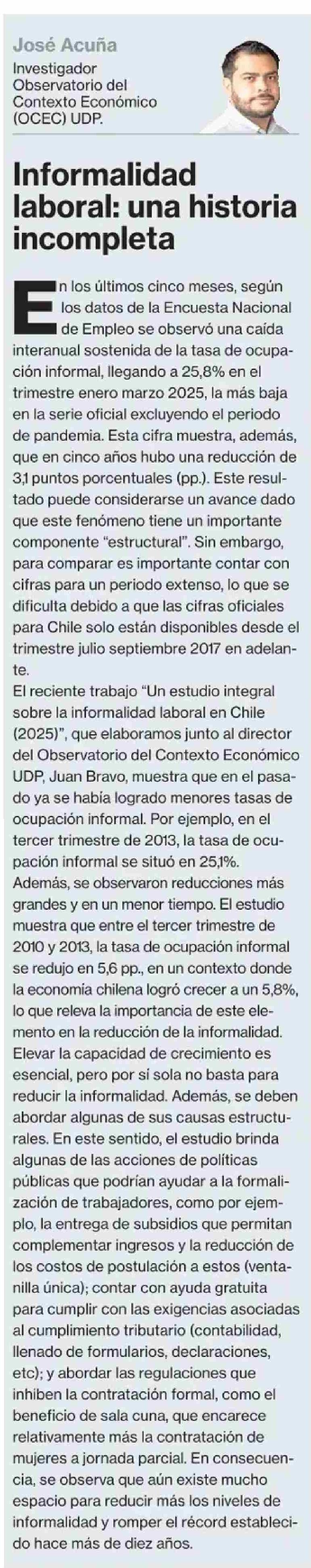 COLUMNAS DE OPINIÓN: Informalidad laboral: una historia incompleta 06-05-2025 La Segunda |