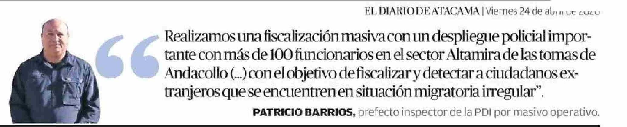 PATRICIO BARRIOS, prefecto inspector de la PDI por masivo operativo. 24-04-2026 El Diario de Atacama |