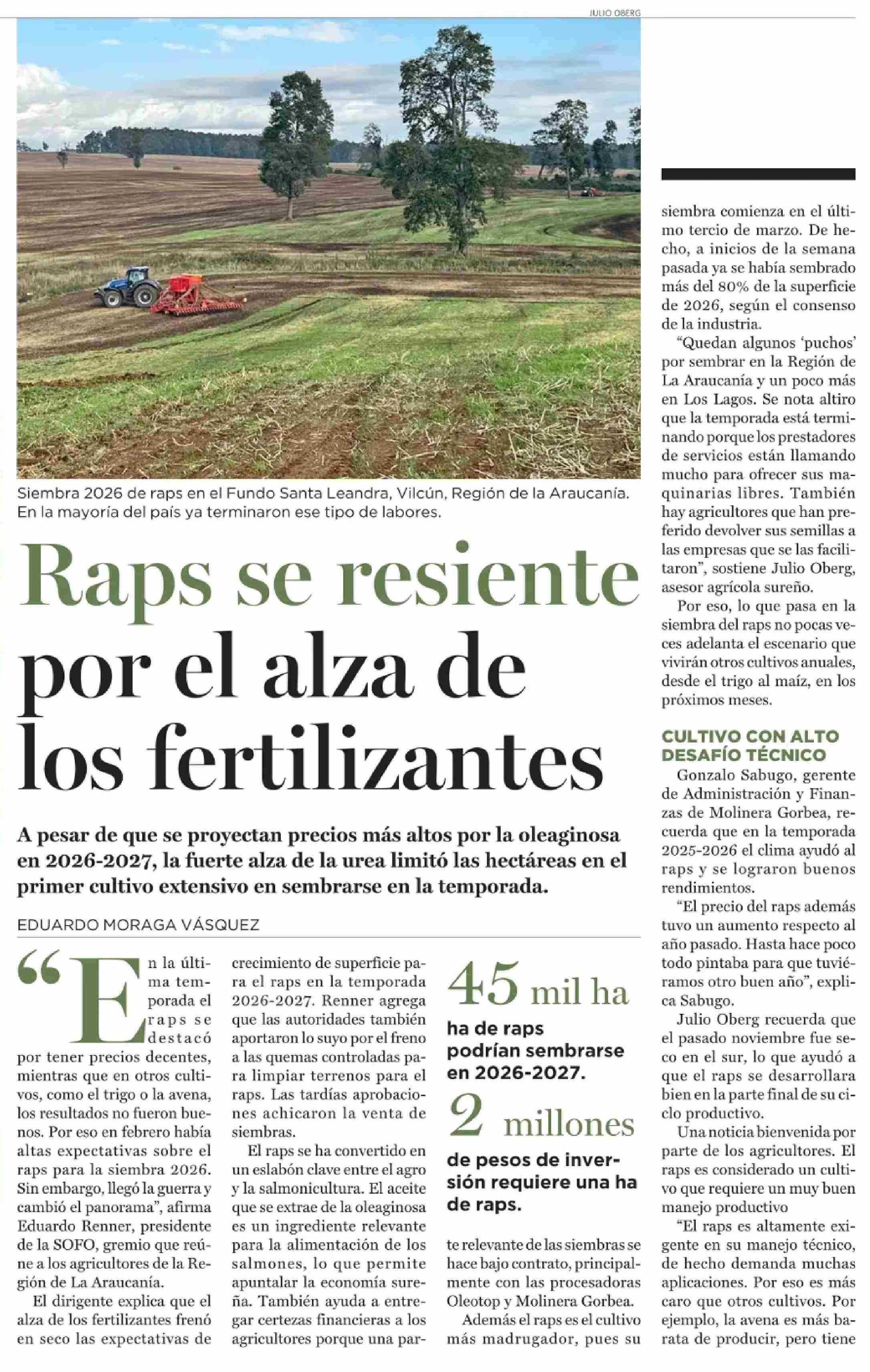 Título: Raps se resiente por alza de los fertilizantes