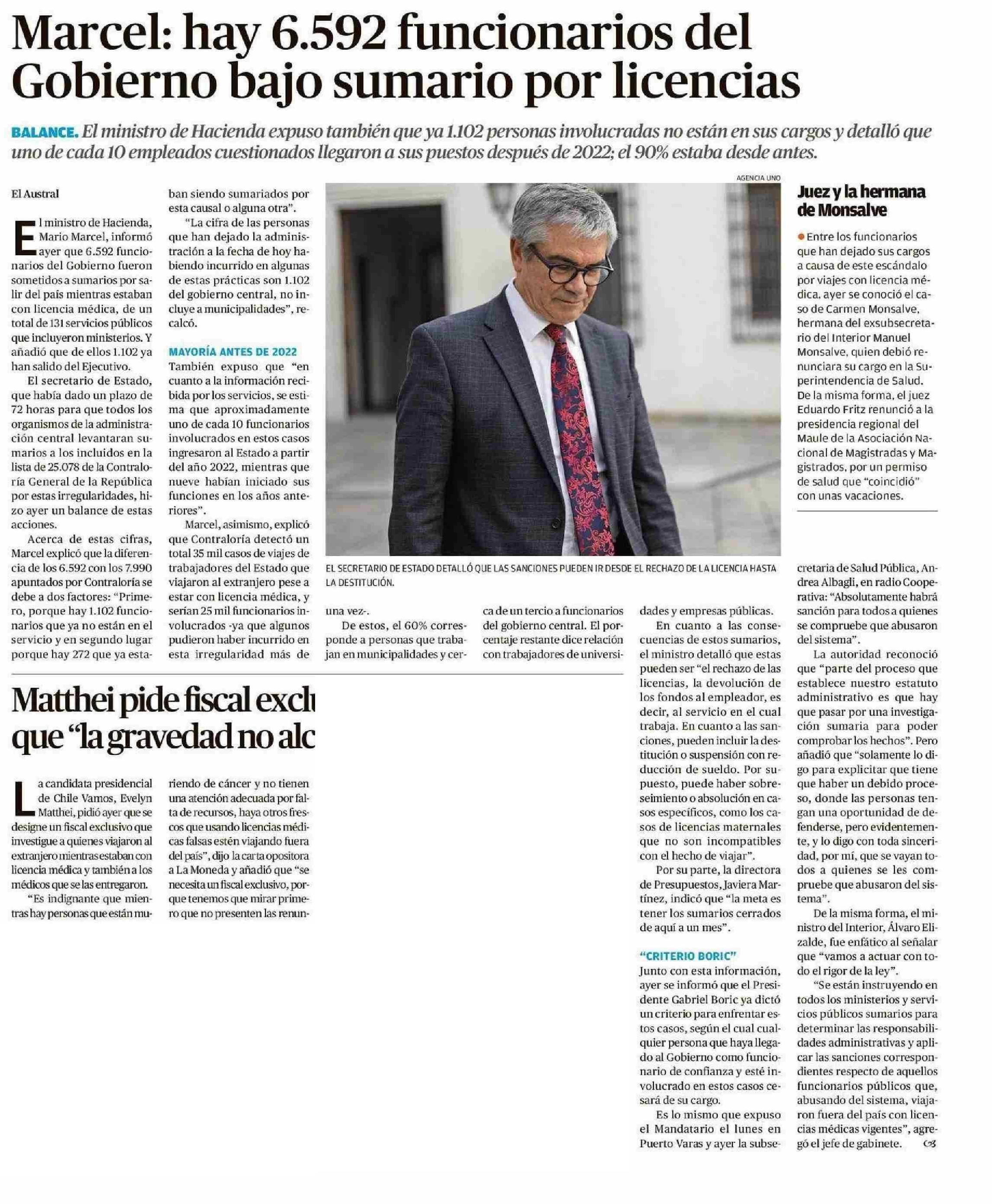 Marcel: hay 6.592 funcionarios del Gobierno bajo sumario por licencias 28-05-2025 El Austral de la Araucanía |
