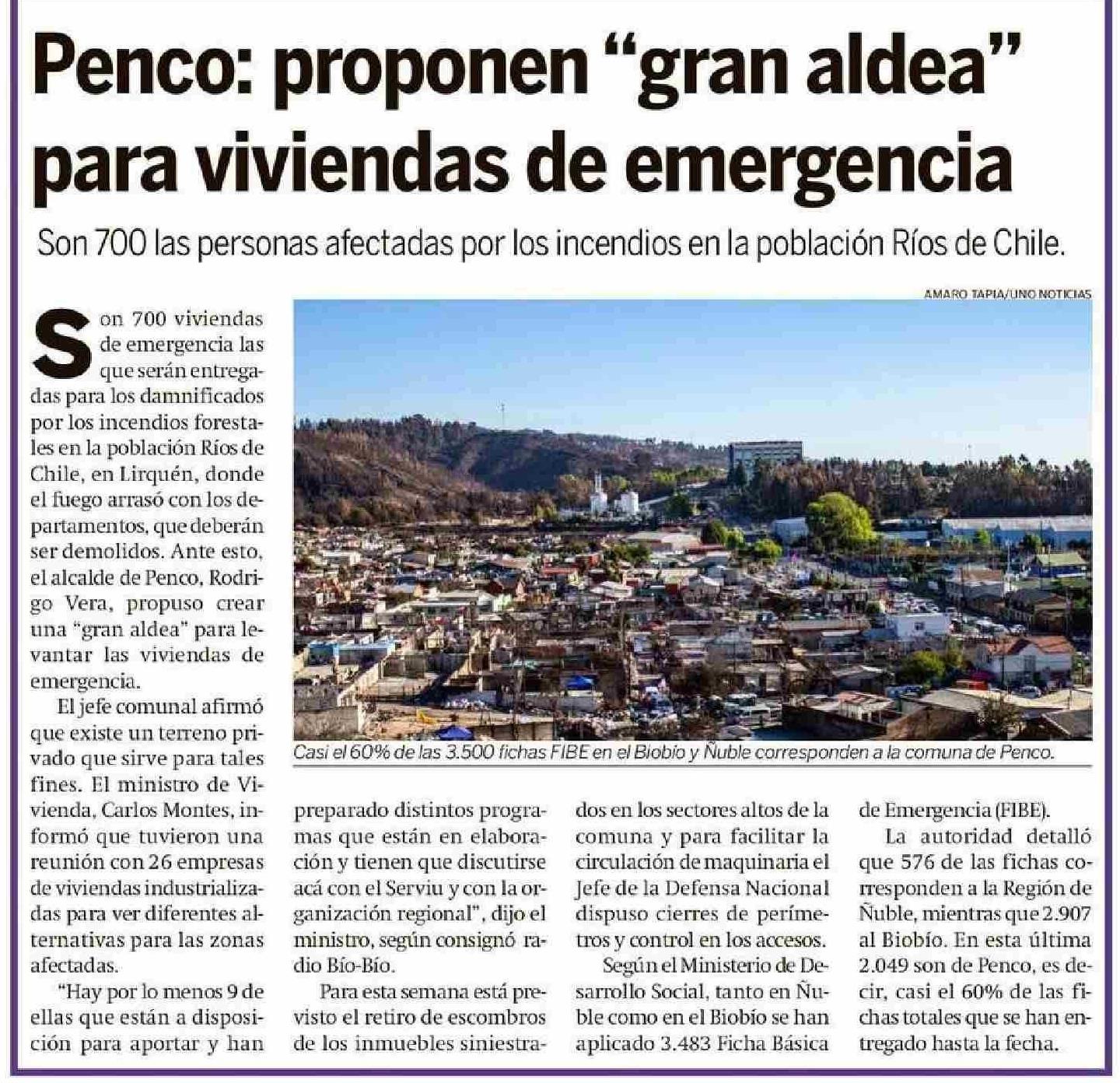 | Título: | Penco: proponen "gran aldea" para viviendas de emergencia |