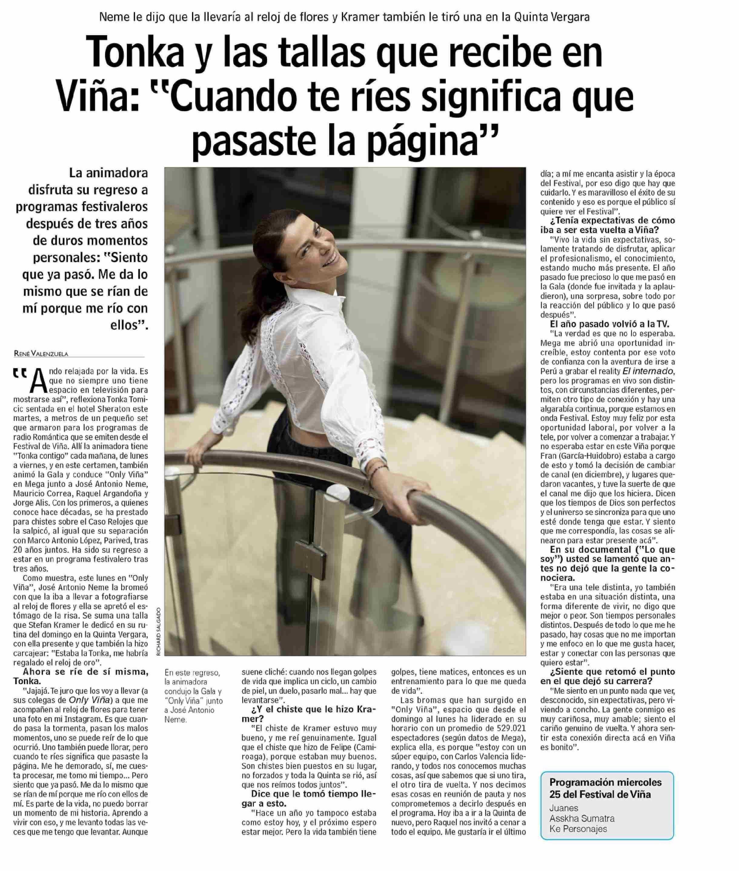 Título: Tonka y las tallas que recibe en Viña: “Cuando te ríes significa que pasaste la página”