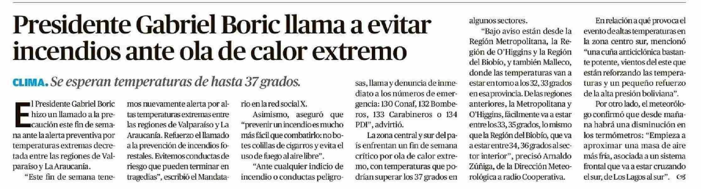 | Título: | Presidente Gabriel Boric llama a evitar incendios ante ola de calor extremo |