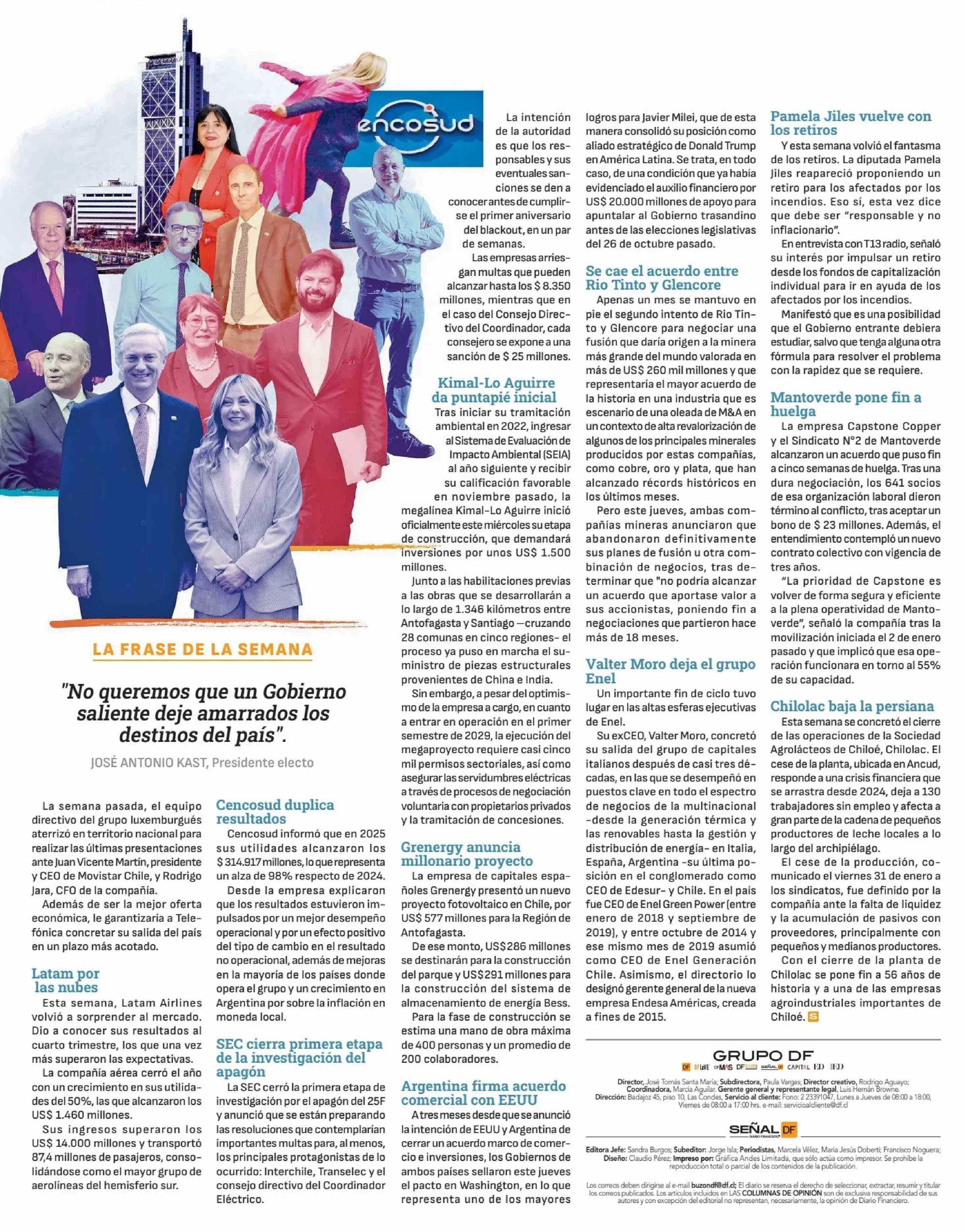 Cara a cara Quiroz-Grau, Tianqi, Millicom y Latam protagonizaron la semana 07-02-2026 Diario Financiero |